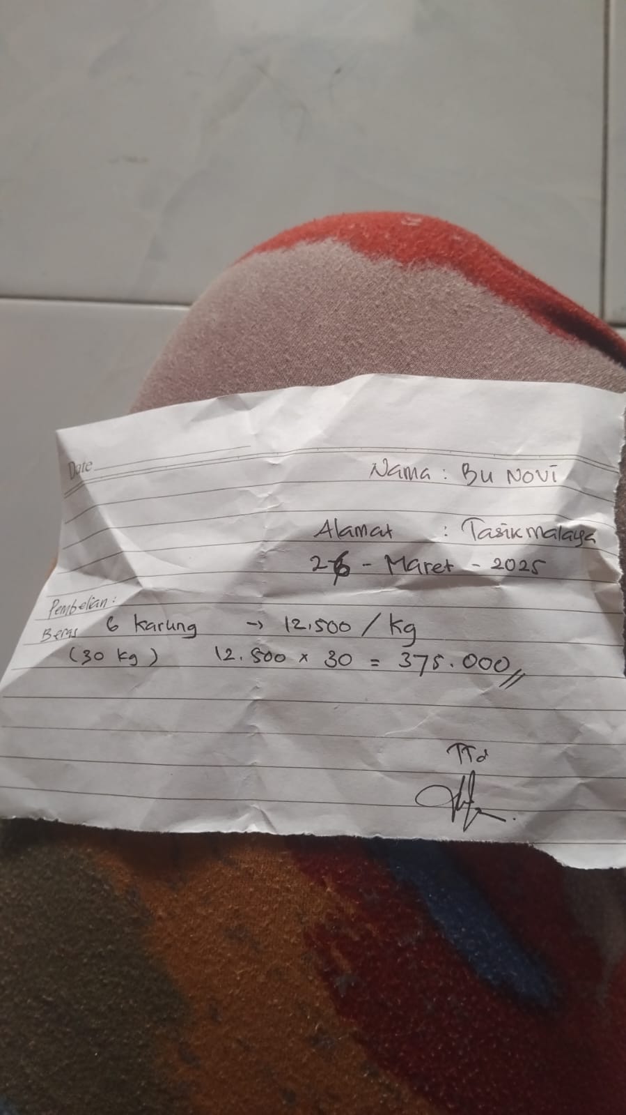 Tidak lupa aku ingin menyampaikan, kalau dana yang diberikan dari TemanBaik sudah digunakan untuk membeli beras dan lauk makan untuk anakku