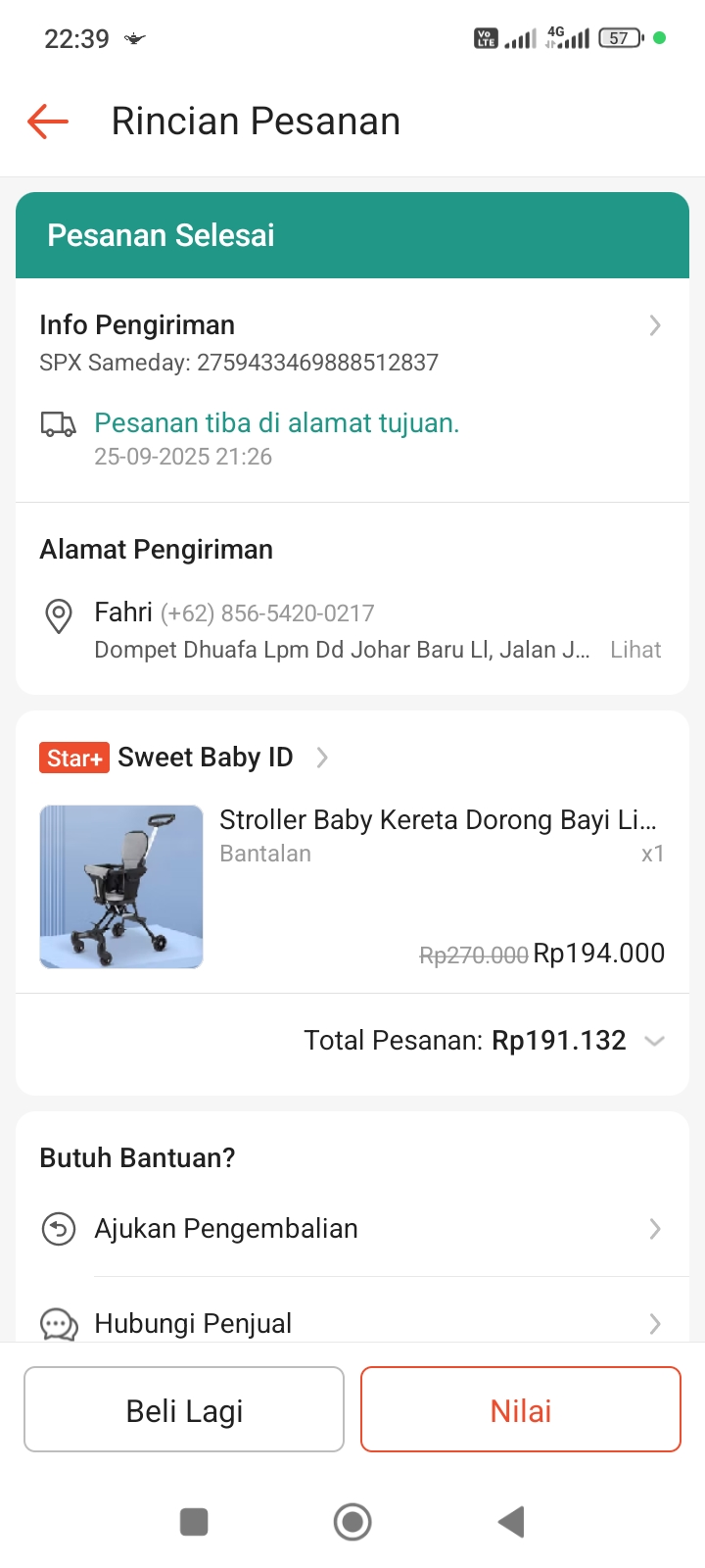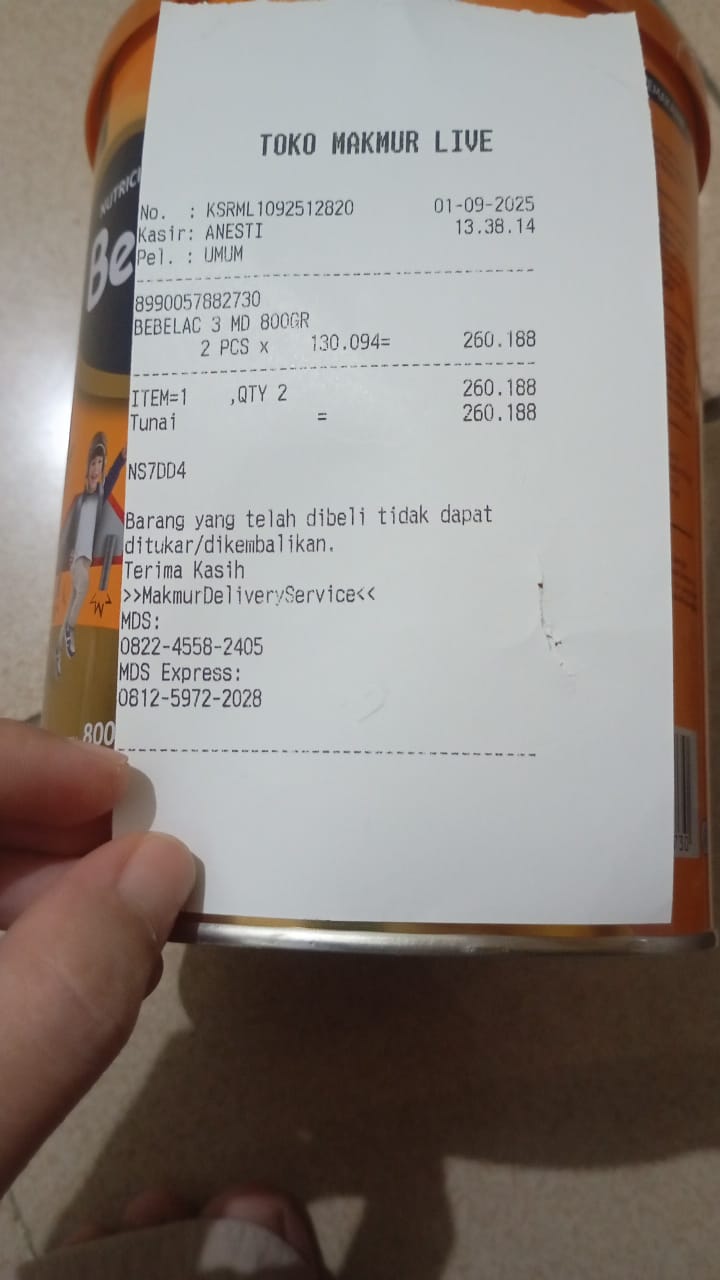 Dana digunakan untuk 1. Susu bebelac 3 rasa madu Rp147.000 x 6= Rp.882.000 2. Grab dari rumah singgah ke bandara= Rp.150.000 3. Pempers happy nappy Rp.45.000x6=Rp.270.000 4. Tisu Rp.19.000x2pak=Rp.38.000 5. Stroler Rp.192.0002025-09-26 10:11:10