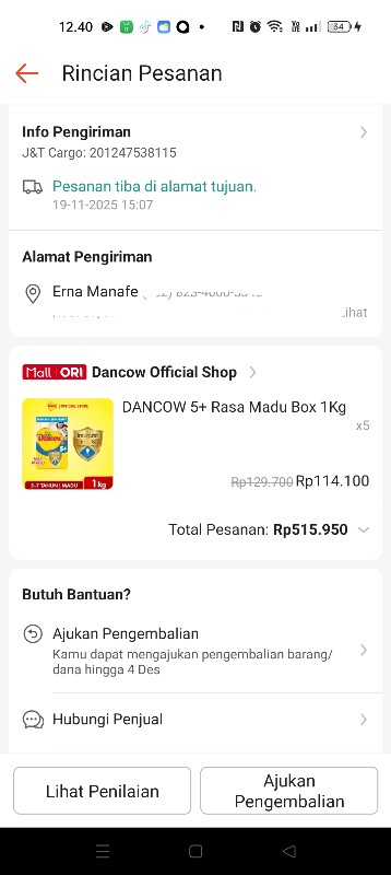Susu Dancow madu 5 plus 800 gram 4 pcs x 98000 = 392.000 dan popoknya mamypoko extra dry Uk XXL 125000 x4 = 500.000 Total 892.0002022-06-29 07:46:33