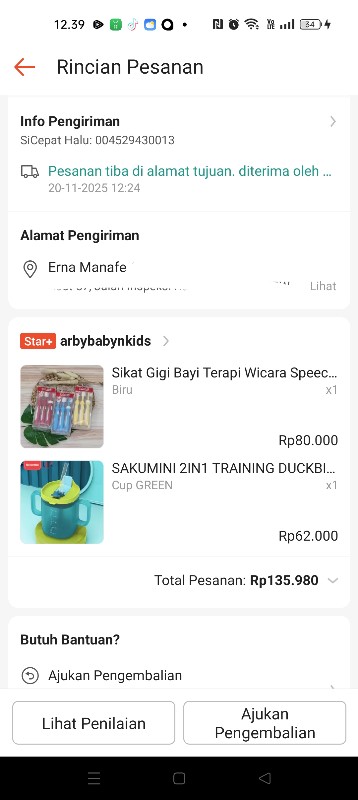 Pembelian sikat gigi untuk terapi wicara dan mug minum untuk Melkior