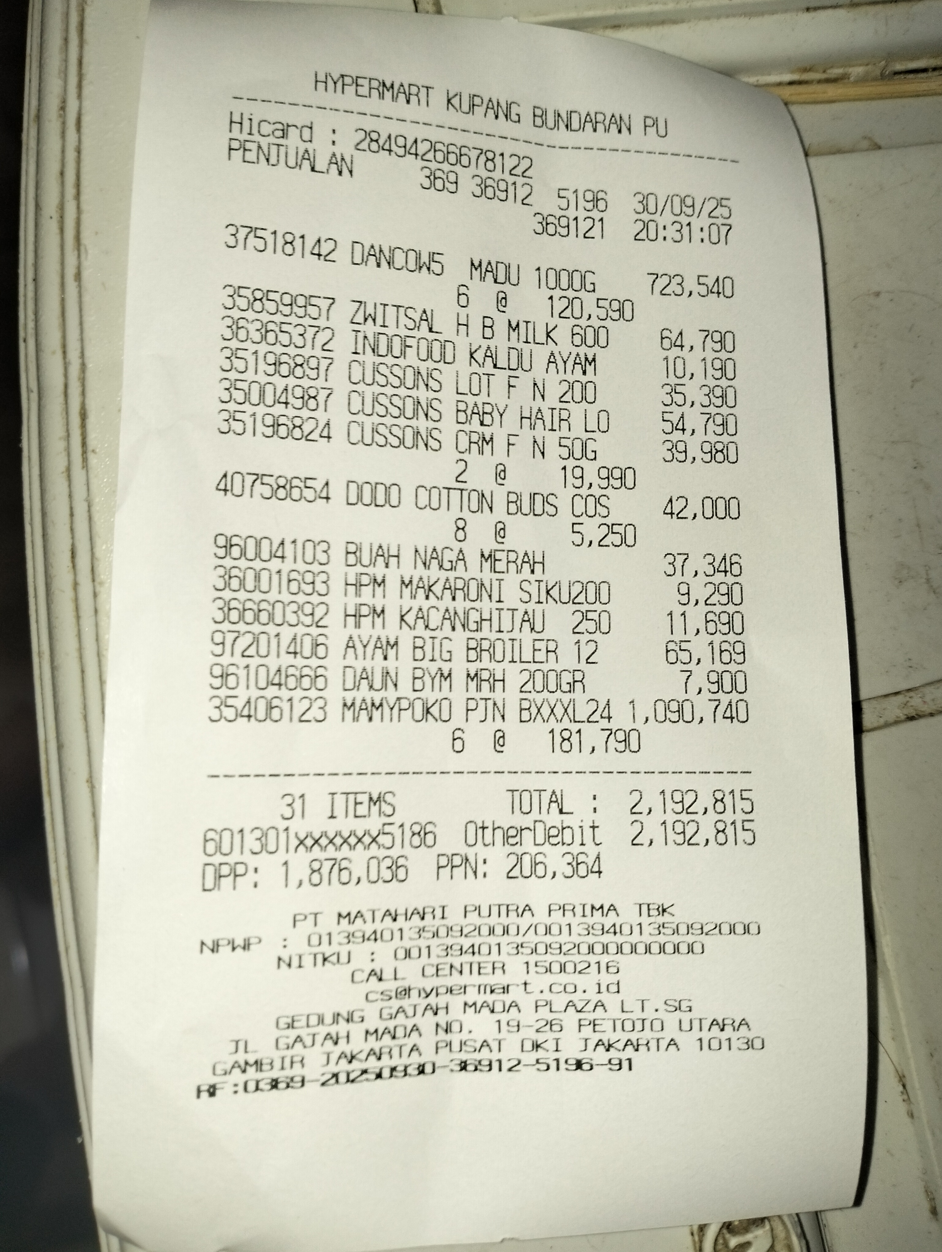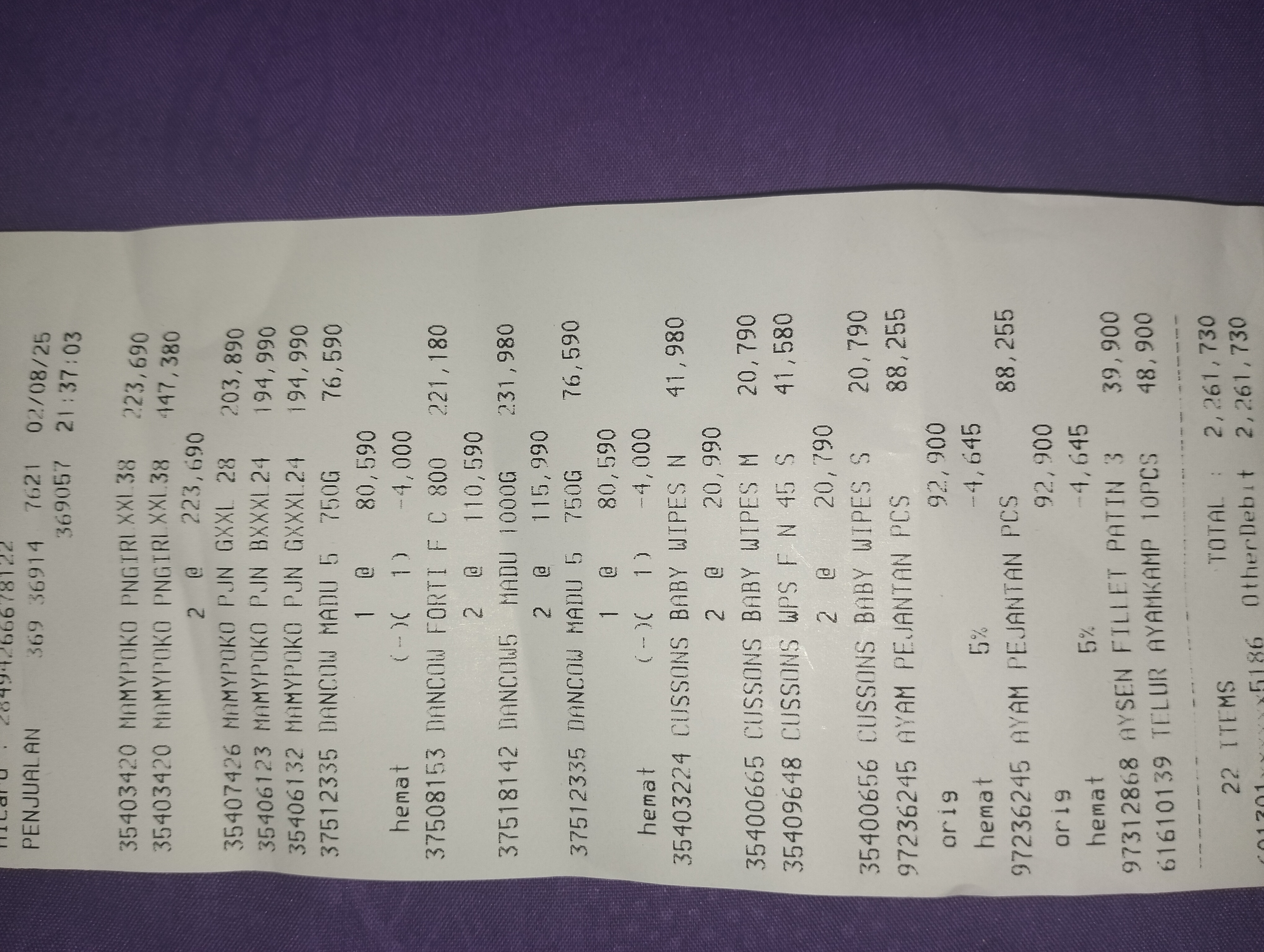 Bukti struk belanja kebutuhan Melkior juga saya sertakan sebagai laporan.Terima kasih yang tak terhingga atas dukungan doa dan donasi #TemanBaik untuk Melkior selama ini. Puji Tuhan, pada tanggal 9 Agustus 2025, Melkior genap berusia 9 tahun. Mohon terus doakan Melkior agar tetap sehat, meskipun kondisinya saat ini hanya bisa berbaring terlentang.