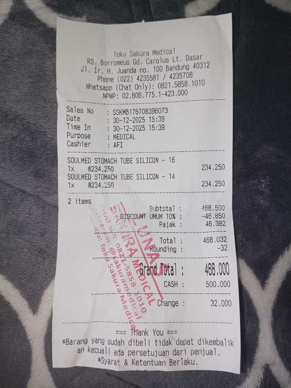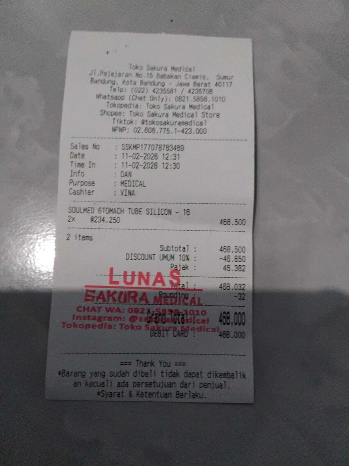 Dana digunakan untuk selang ngt silicon Rp240.000×2 = Rp480.0002025-12-30 10:32:56