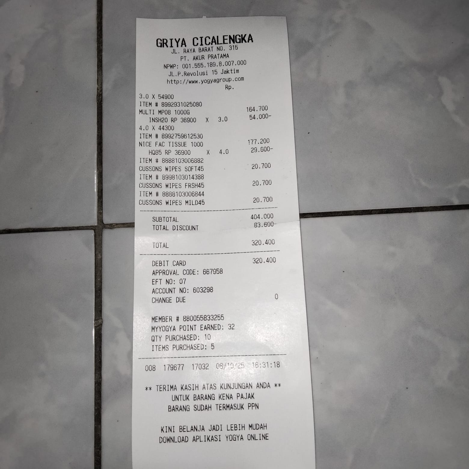 7. Tisu basah Rp15.000 x 5 pcs = Rp75.000