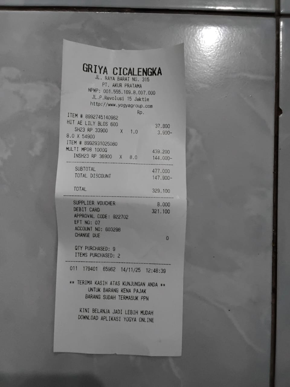 Dana digunakan untuk 1. Tisu kering Rp39.000 x 7 = Rp273.000 2. Ngt Silicon Rp240.000 x 2 = Rp480.0002025-11-13 09:15:13