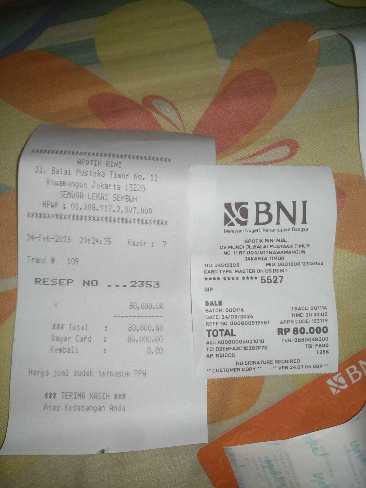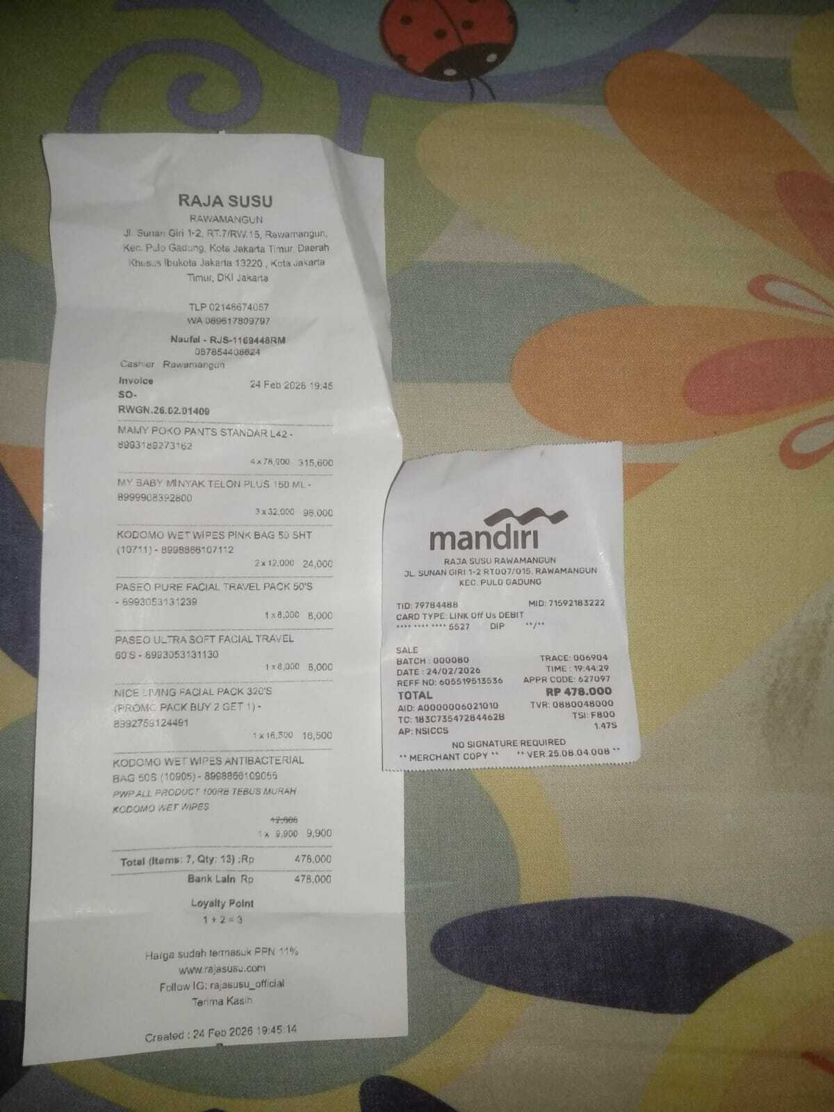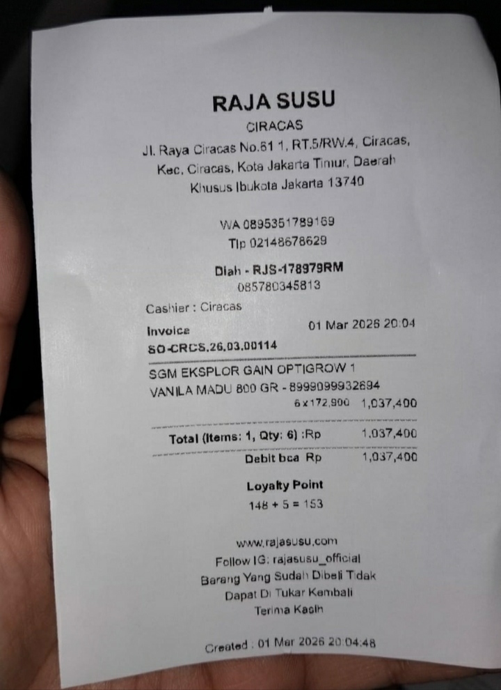 Dana digunakan untuk 1. Susu Rp70.000x 2 box = Rp140.000 2. Pampers sweety Rp80.000 3. Feeding buret Rp250.000 4. NGT Rp60.000X2= Rp120.0002026-02-05 10:26:33