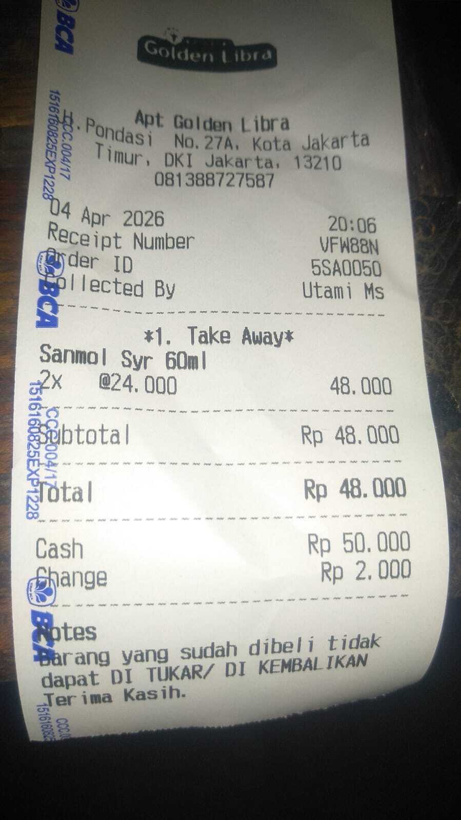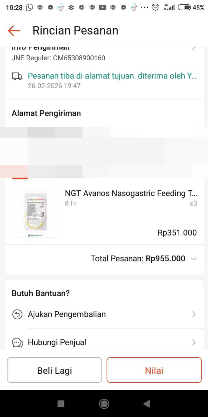 Dana bantuan dari #TemanBaik digunakan untuk pembelian pampers, susu, NGT, obat Sanmol 2 botol, serta alat steril dot dan feeding burret.