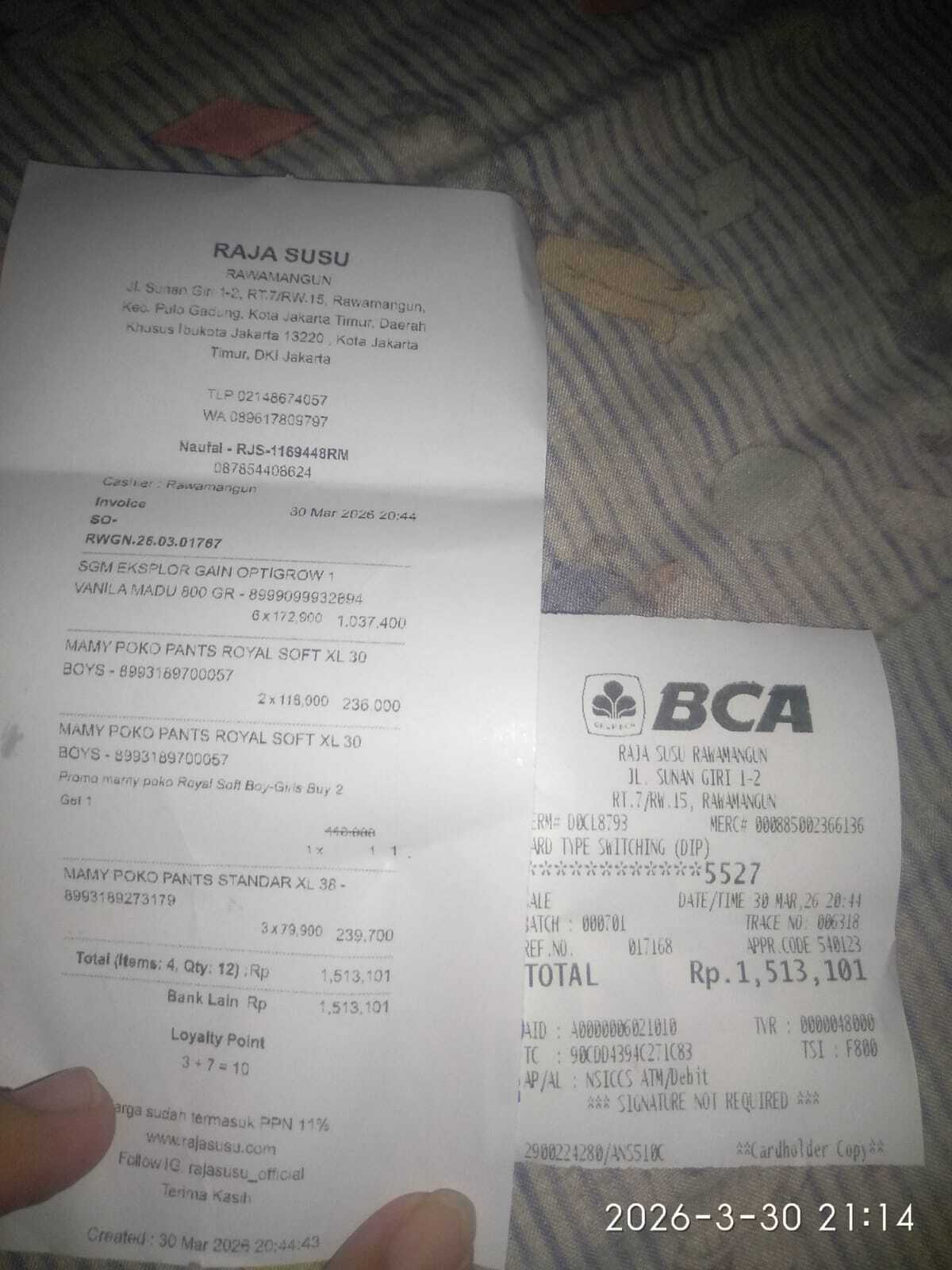 Dana digunakan untuk 1. Pampers Mamy pokok 6pcs x Rp85.000= Rp510.000 2. Susu SGM gain 6 box x Rp172.000= Rp1.032.000 3. NGT avanos 3x Rp318.000= Rp954.000 4. Sanmol 2x Rp30.000= Rp60.000 5. Steril dot dan Feeding burret Rp250.0002026-03-31 14:14:11