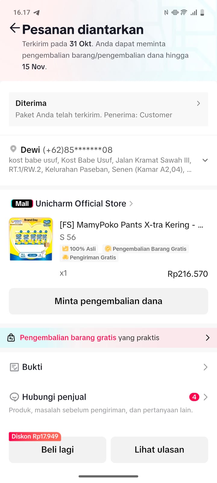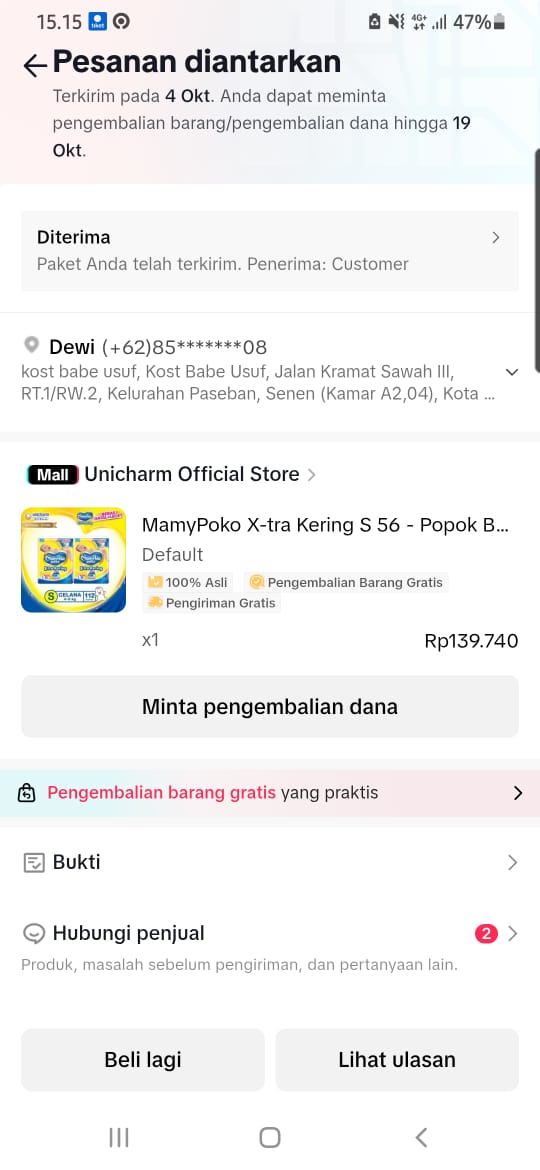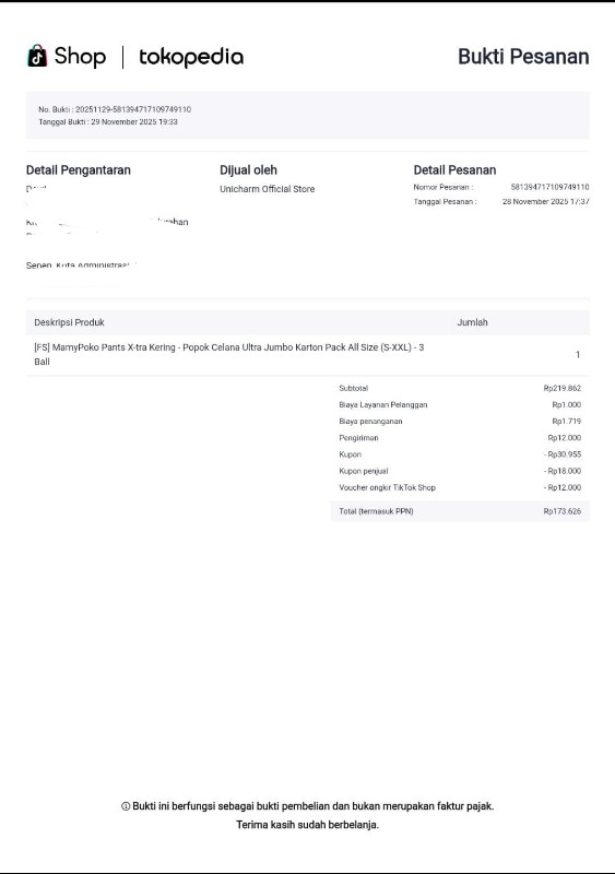 Dana digunakan untuk Pembelian pampers mamypokok extra 2 ball2025-10-06 10:27:27