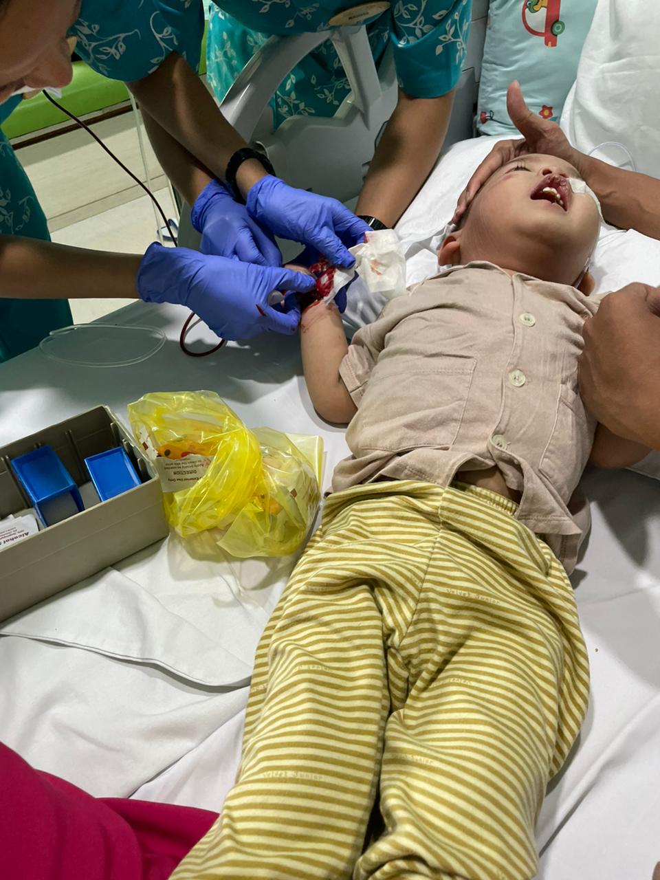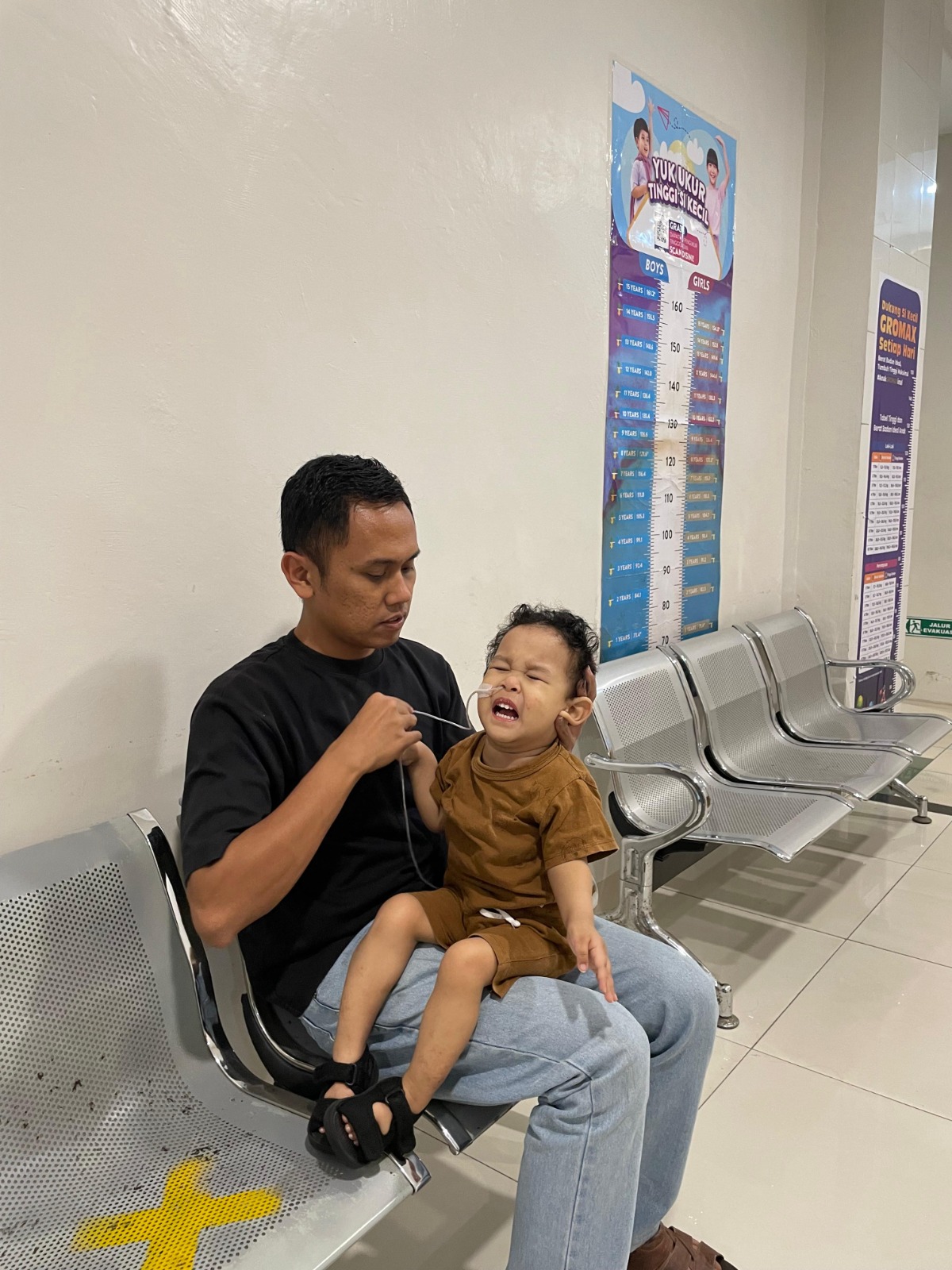 Dokter mengatakan anakku mengalami dehidrasi dan infeksi paru-paru. Ia harus menggunakan alat medis karena sempat henti napas secara tiba-tiba. Dua minggu berlalu di ruang perawatan, anakku masih tetap tak membuka matanya.Tapi ketika dicubit, Ia tetap merespon meski lambat, tanda Ia masih berjuang.