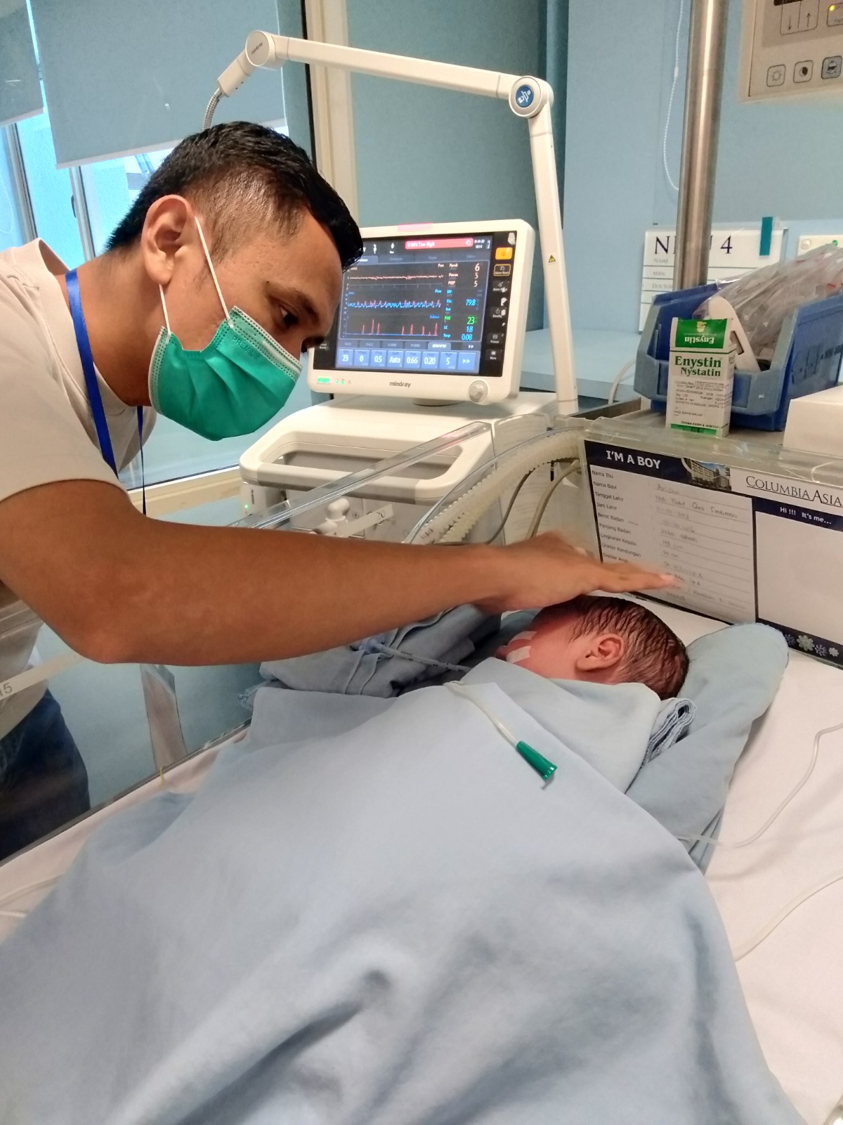 Seminggu setelah lahir, Nuh Tsabit Qies Sinulingga (2 thn) mendadak sering memejamkan matanya dan menolak minum susu. Aku terus berusaha meminumkannya karena berat badannya turun drastis, tapi justru membuatnya tersedak.