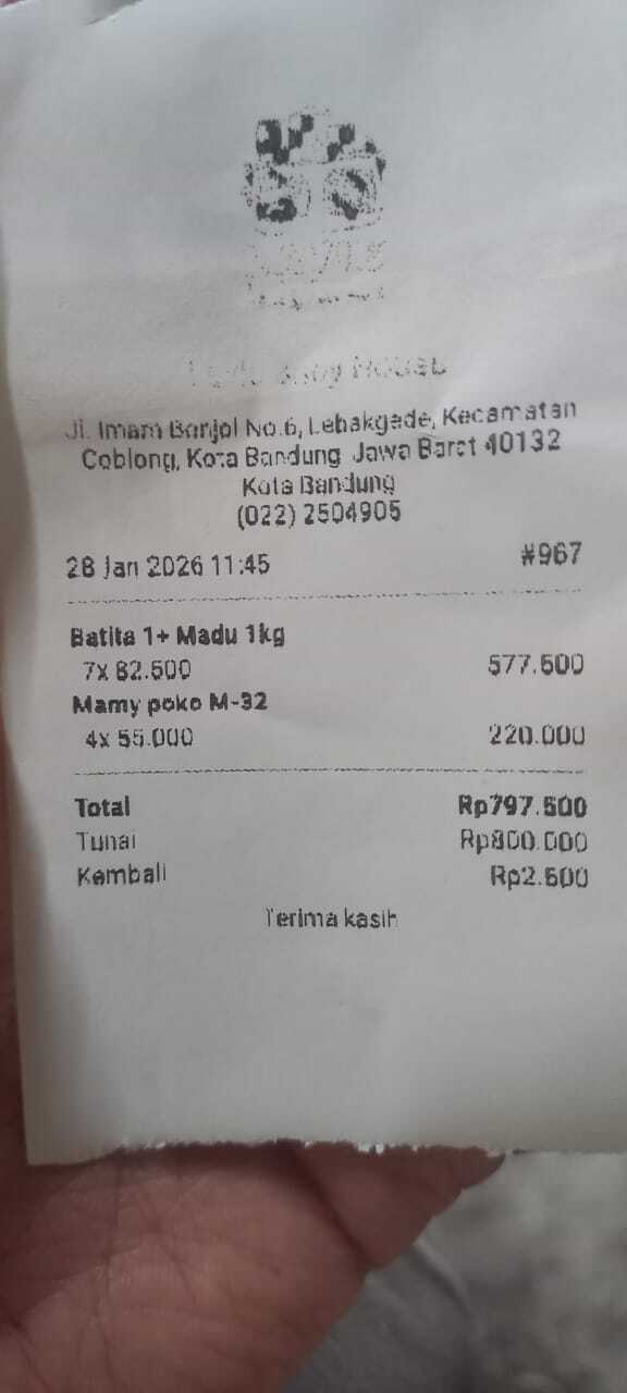 Dana digunakan untuk 1. Susu Dancow 1+ 750 gr 6 dus x Rp86.000 = Rp516.000 2. Pampers size L 4 ball x Rp55.000 = Rp220.000 3. Reimburse Nipe Paracetamol Rp106.000 4. Reimburse Imuped Rp75.0002026-02-02 13:24:15