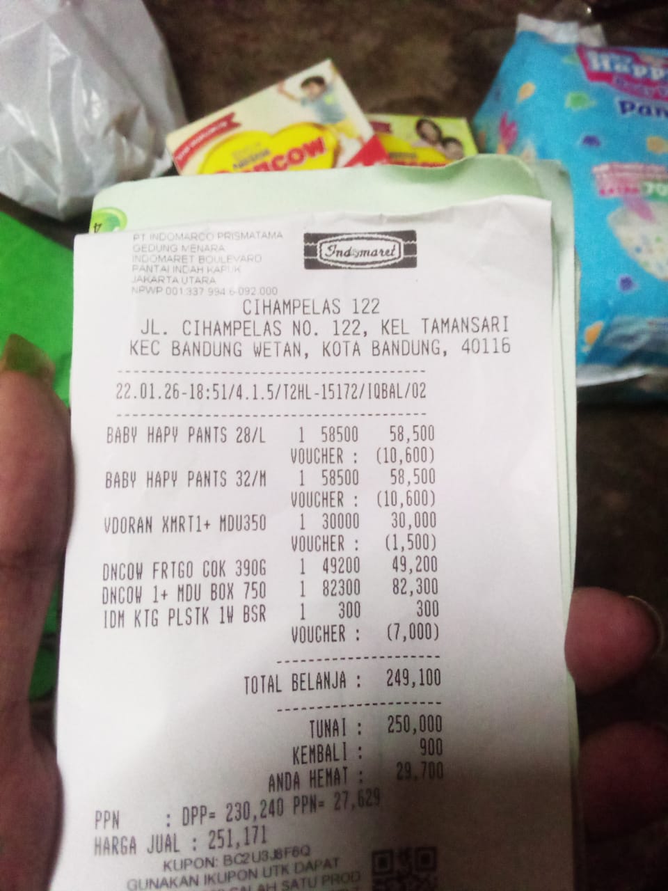 Dana dari #TemanBaik telah digunakan untuk membeli pampers dan susu.
