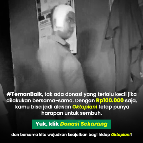 #TemanBaik, tak ada donasi yang terlalu kecil jika dilakukan bersama-sama. Dengan Rp100.000 saja, kita bisa jadi alasan Oktapiani tetap punya harapan untuk sembuh. Yuk, klik Donasi Sekarang dan bersama kita wujudkan keajaiban bagi hidup Oktapiani!