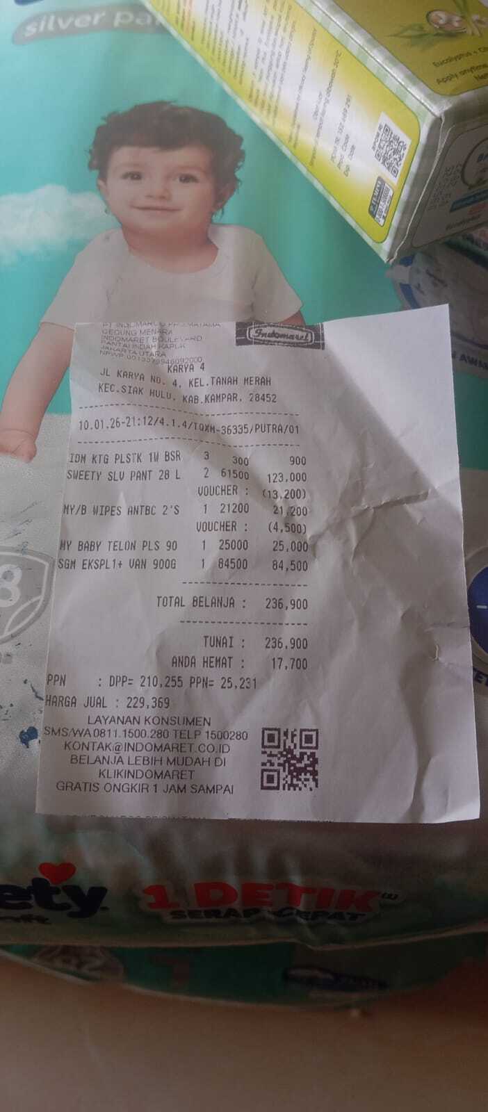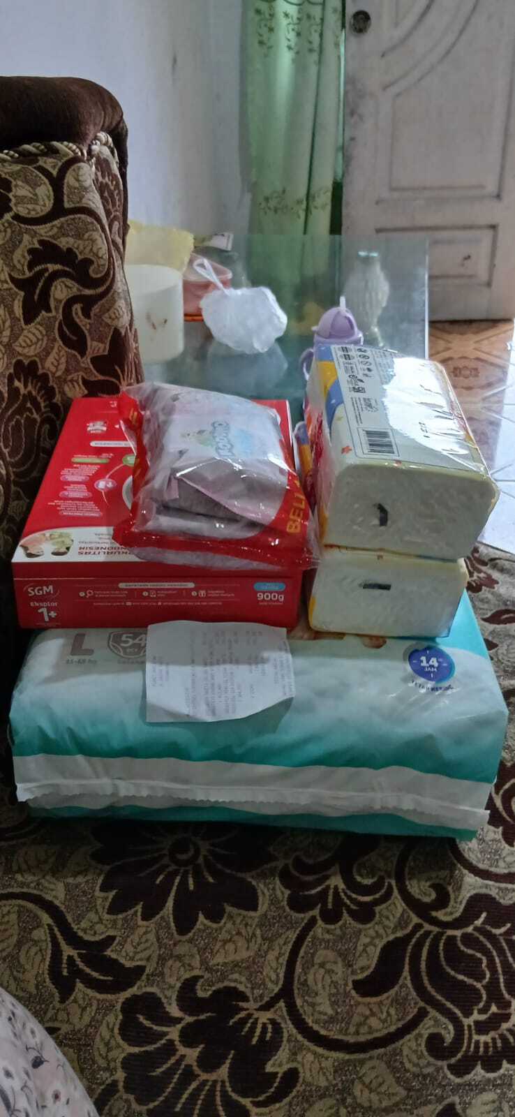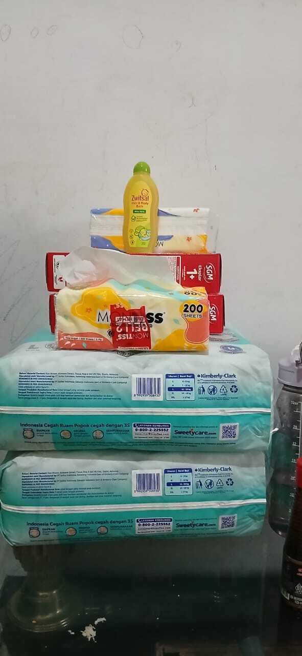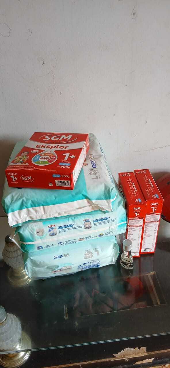 Dana bantuan dari #TemanBaik digunakan untuk pembelian susu, pampers, tisu kering, dan tisu basah.