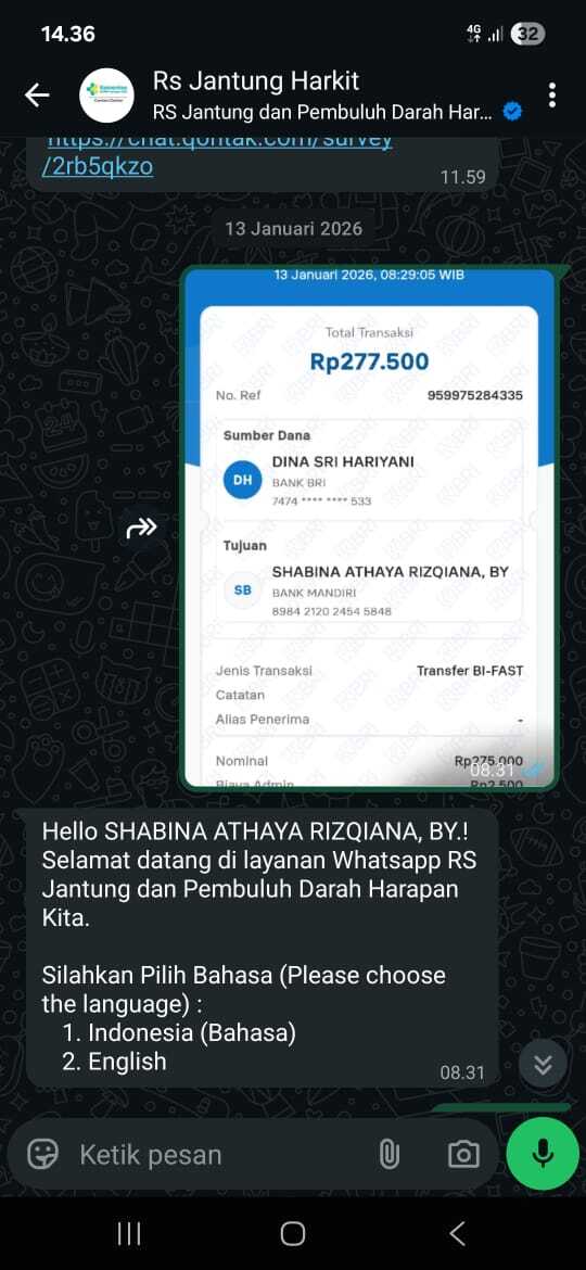 Alhamdulillah, Shabina sudah menjalani tindakan CT scan dan hasilnya juga sudah keluar. Kami telah melakukan kontrol secara online dengan dokter di RS Jantung Harapan Kita, dan saat ini kami sedang menunggu keputusan dari dokter bedah mengenai tindakan selanjutnya.