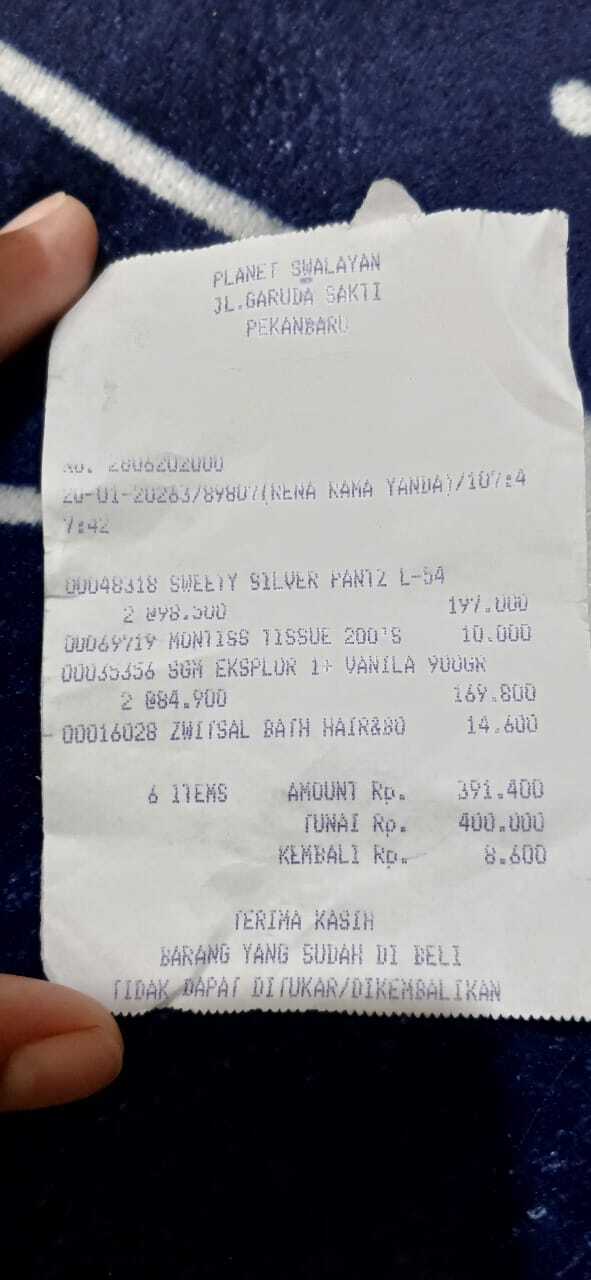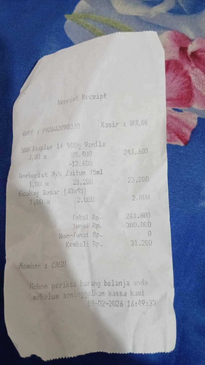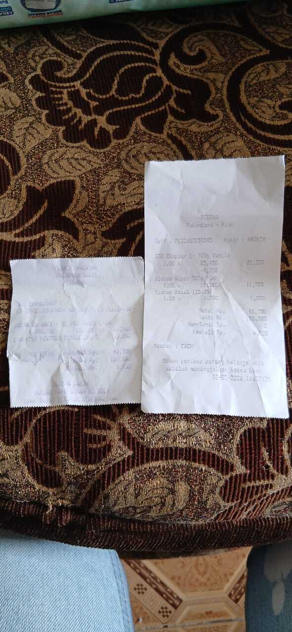 Dana digunakan untuk 1. Pembelian susu sgm 4 dus x Rp100.000 = Rp400.000 2. Pampers swety ukuran L isi 54 Rp100.000 x 3 ball = Rp300.000 3. Reimburse pampers dan tisu kering Rp96.700 4. Reimburse susu sgm dan tisu basah Rp93,7002026-02-05 10:27:21