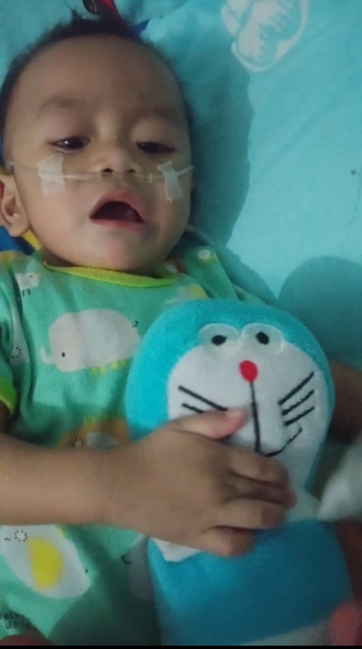 Kondisi anakku saat ini sangat kurus akibat muntah dan BAB. Ia juga kerap sesak napas hingga harus menggunakan alat bantu oksigen.Tapi terkadang, ada momen kecil yang membuat anakku bahagia, ketika ia tampak aktif, berusaha tengkurap, dan membalikkan badan.