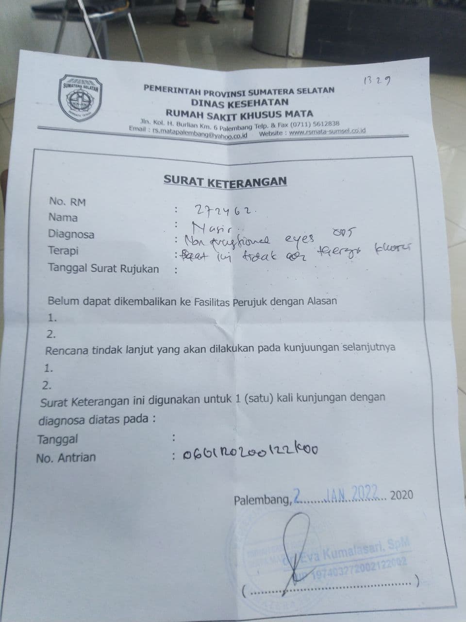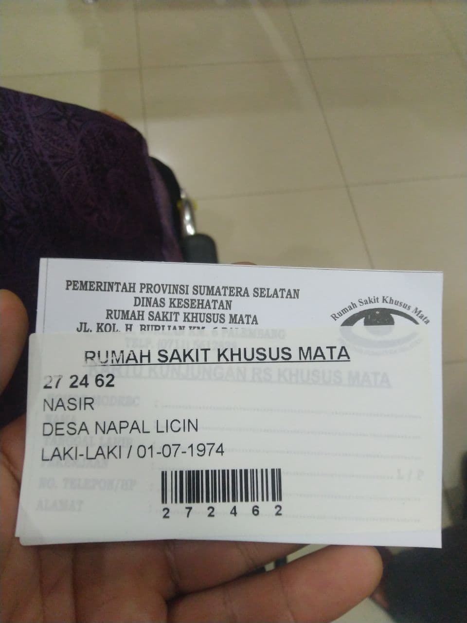 Setelah dirujuk, Pak Nasir juga sudah diperiksa di rumah sakit khusus mata di Palembang.