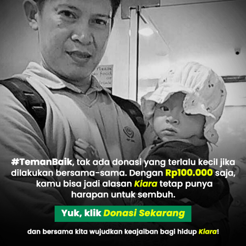#TemanBaik, tak ada donasi yang terlalu kecil jika dilakukan bersama-sama. Dengan Rp100.000 saja, kita bisa jadi alasan Kiara tetap punya harapan untuk sembuh. Yuk, klik Donasi Sekarang dan bersama kita wujudkan keajaiban bagi hidup Kiara!