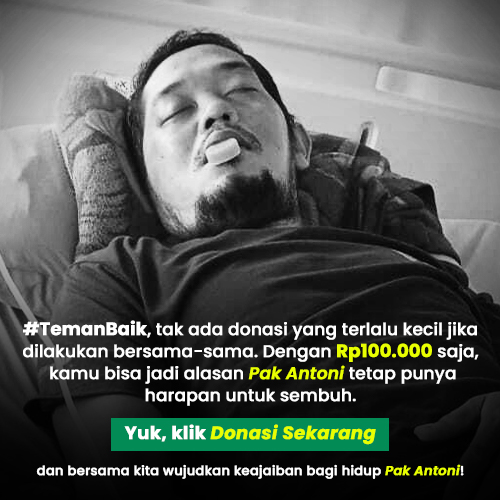 #TemanBaik, tak ada donasi yang terlalu kecil jika dilakukan bersama-sama. Dengan Rp100.000 saja, kita bisa jadi alasan Antoni tetap punya harapan. Yuk, klik Donasi Sekarang dan bersama kita wujudkan keajaiban bagi hidup Antoni!