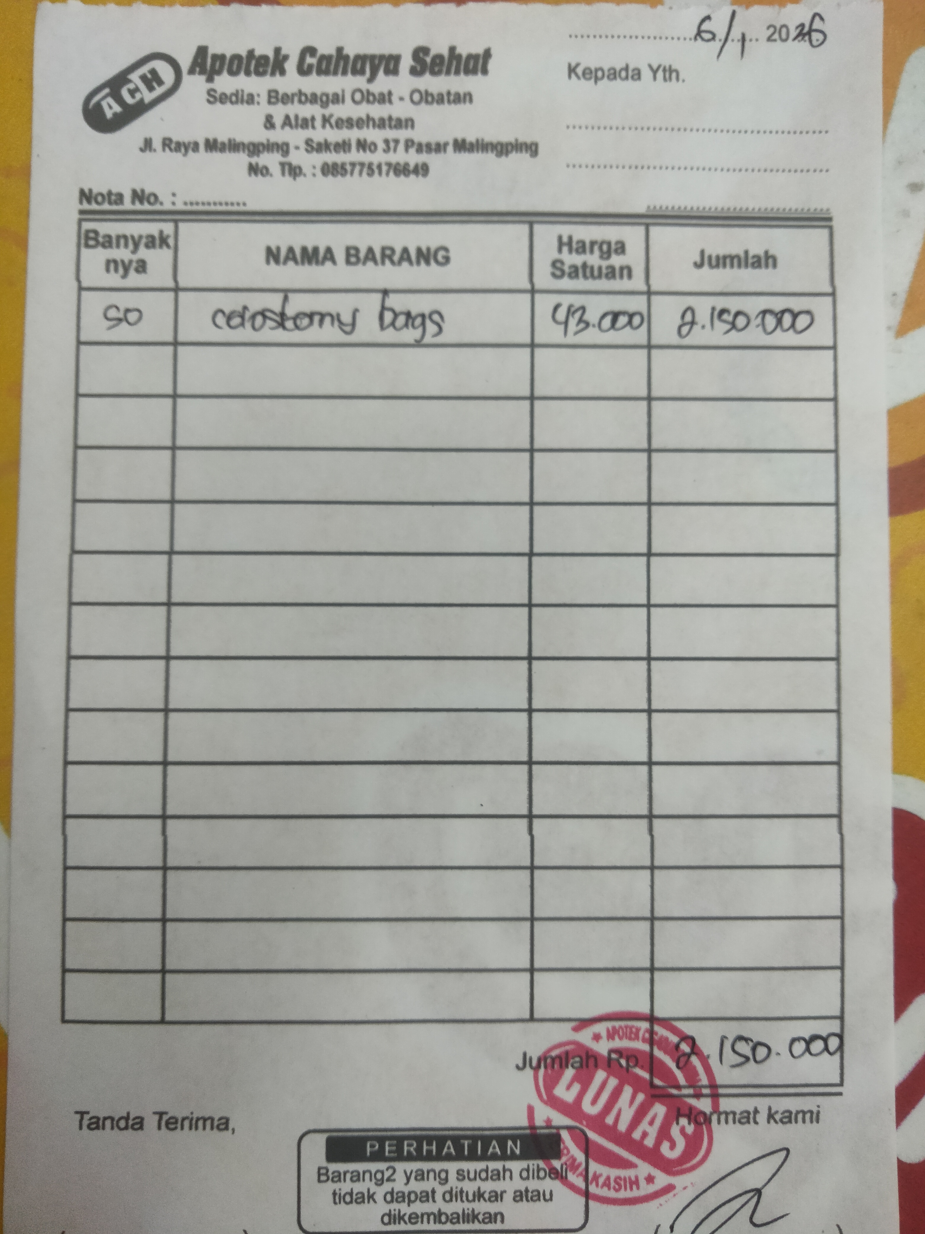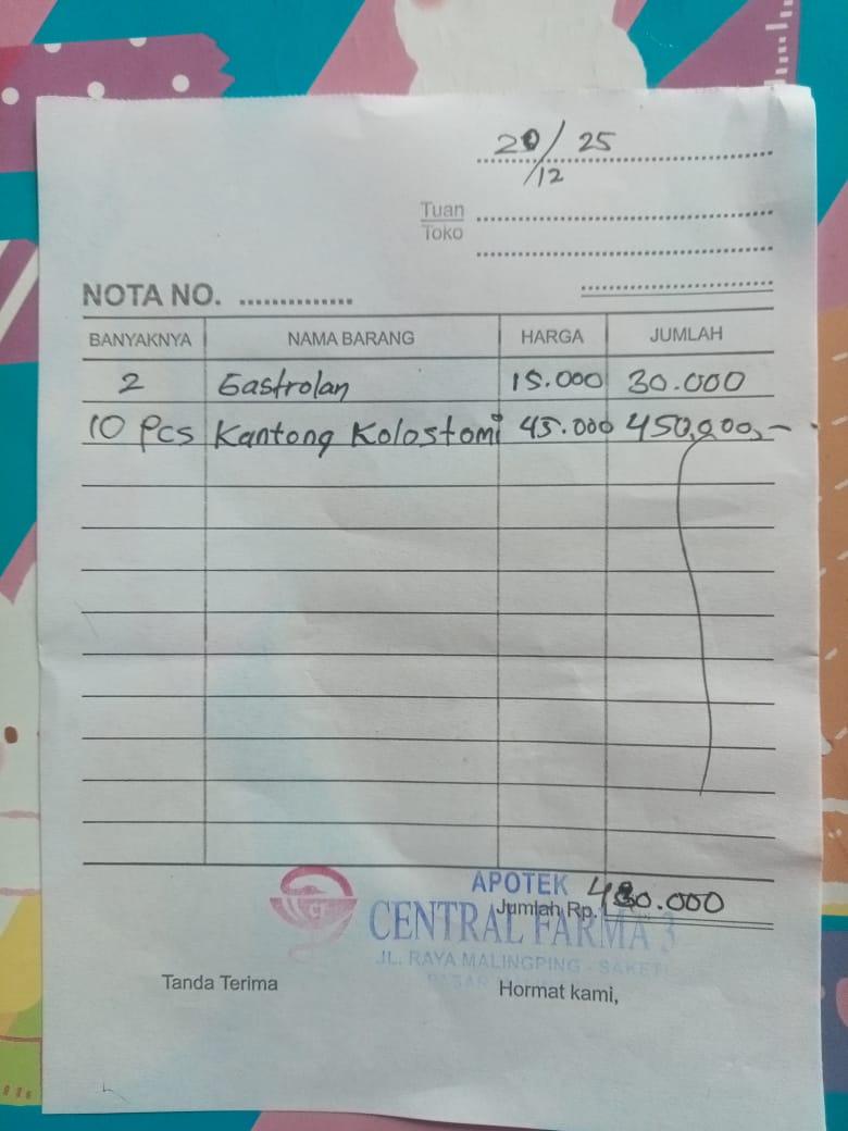 Berikut kami lampirkan bukti pembelian kantong kolostomi.