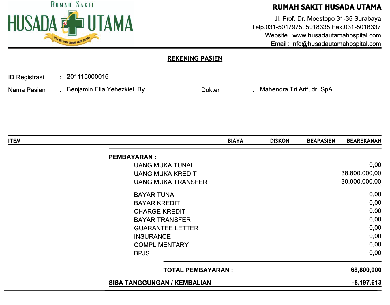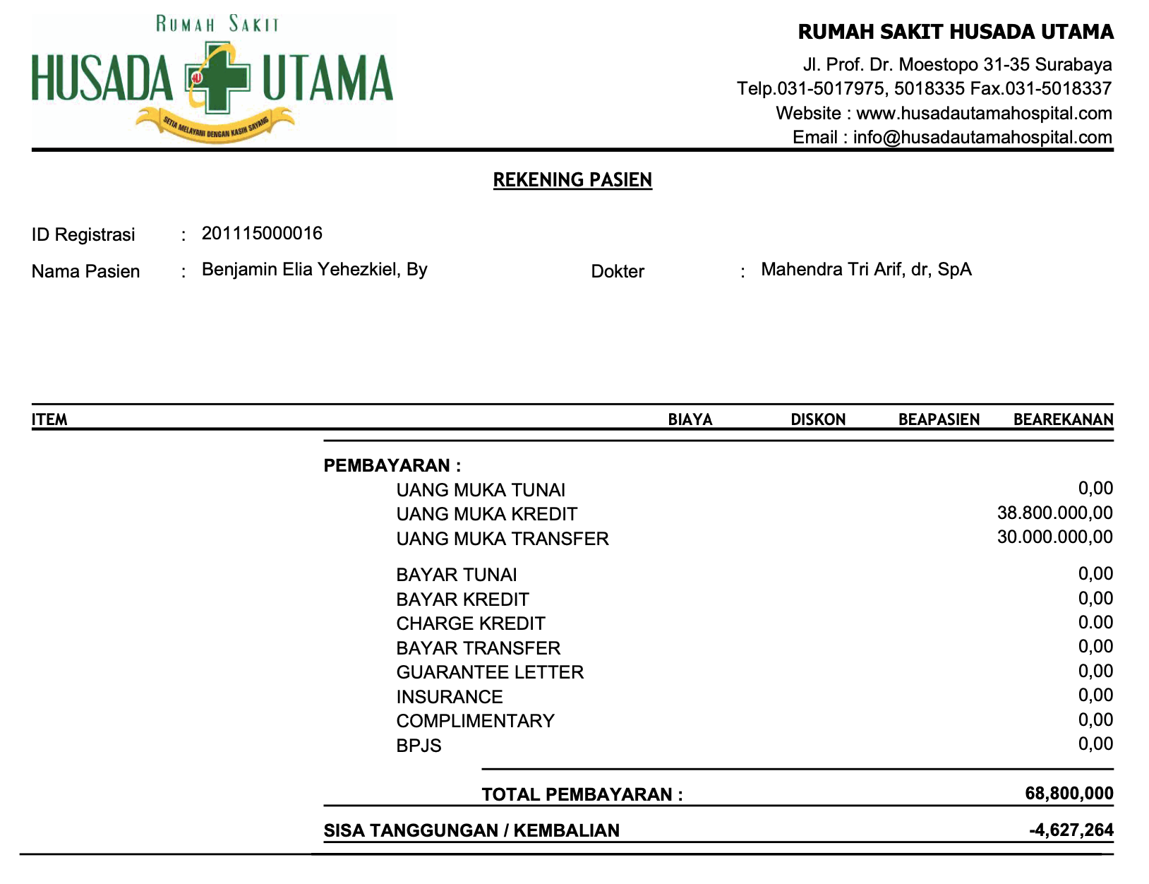 Dana digunakan untuk obat” an dan rawat jalan karena adik benjamin masih dalam pengawasan dokter2021-03-23 15:38:24