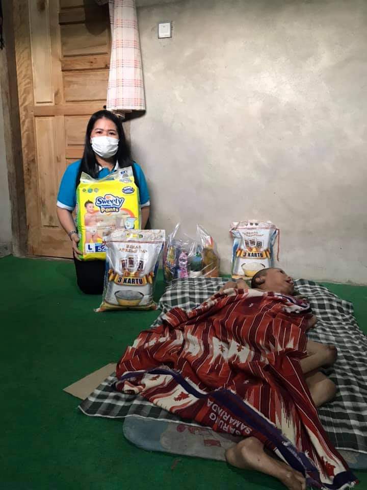 Gambar 2. Salah satu adik disabilitas, hanya mendapatkan perawatan di rumah karena keterbatasan biaya, memiliki permasalahan sakit di bagian perut, kekurangan gizi yang buruk untuk saat ini kita belum tahu penyebab sebenarnya dari penyakit yang di derita.