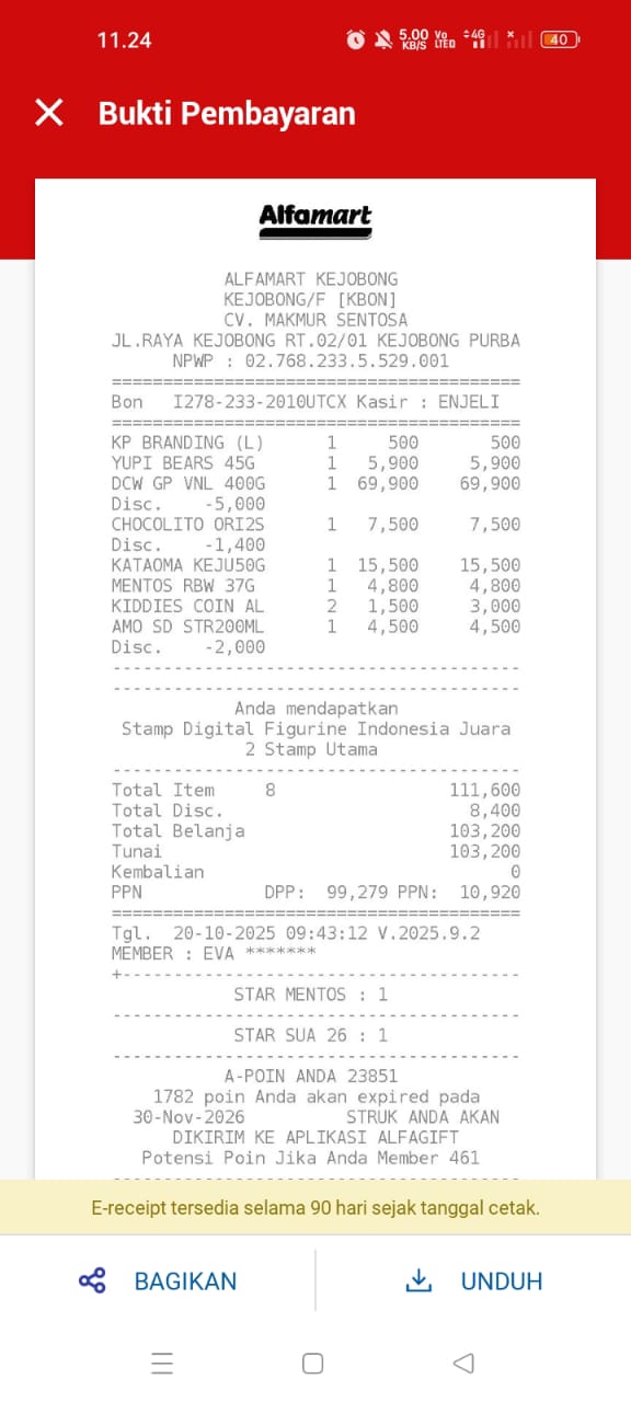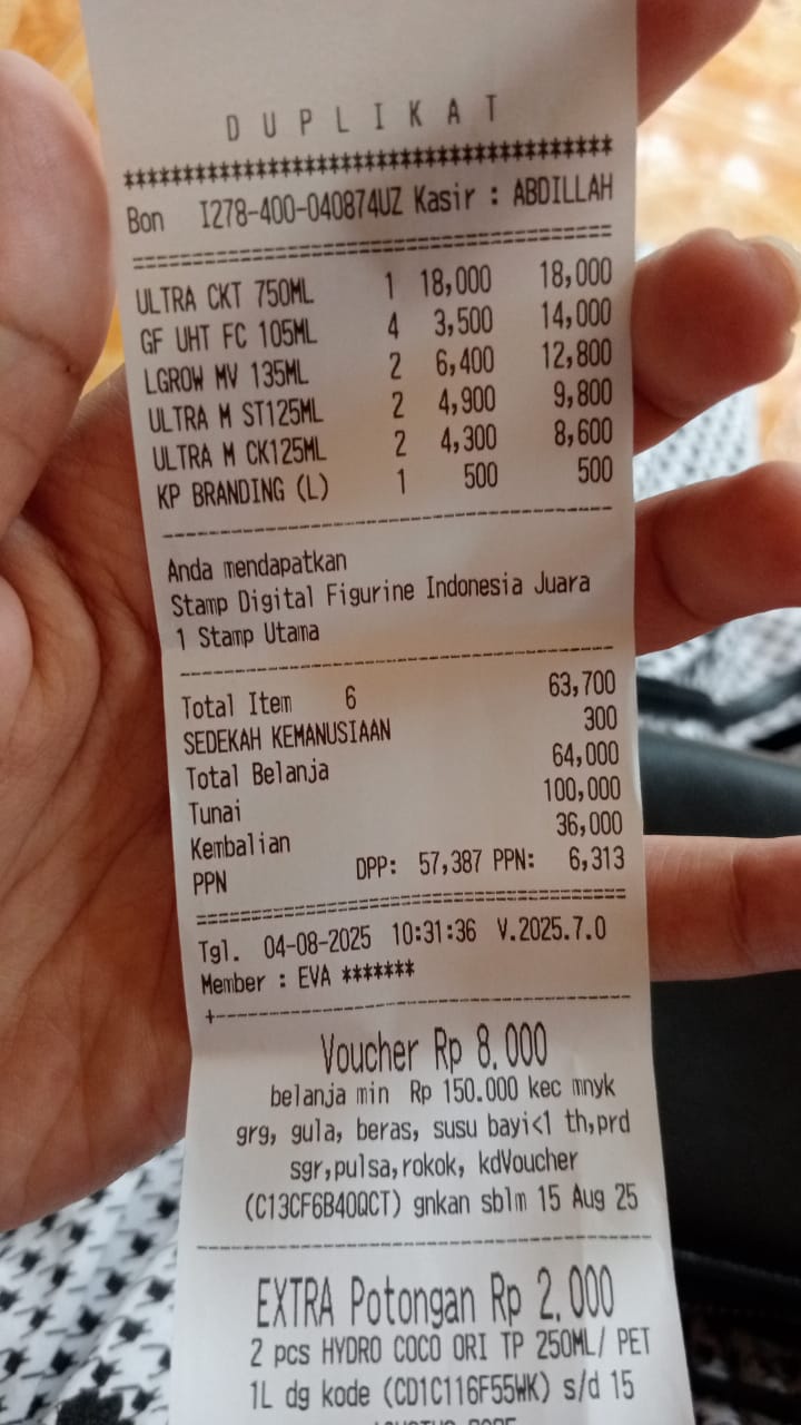 Dana digunakan untuk 1. Vitamin D3 Rp60.000 2. Vitabumin Rp65.000 4. Pampers sweety 3 pcs Rp112.000 5. Susu Dancow gain & grow Rp115.0002025-09-15 09:18:12