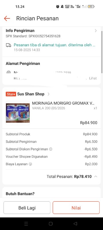 Dana digunakan untuk 1. Oxymeter oksigen Rp75.000 2. Pampers sweety bronze L 2ball Rp82.000 3. Susu morigro gromax 200 gram Rp80.0002025-08-14 15:11:31