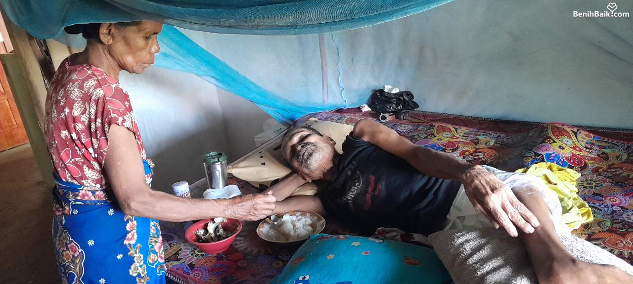 “Kain seadanya terpaksa aku gunakan sebagai pengganti popok yang tak mampu kubelikan untuk suamiku. Tubuhnya kian menyusut, tinggal tulang yang terbungkus kulit. Ia hanya bisa meringkuk, menahan nyeri yang tak ada habisnya. Berobat ke rumah sakit hanyalah mimpi yang terlalu jauh, obat warung murah menjadi satu-satunya harapan pereda nyerinya…” -Modesta Malo, Istri Pak Yohanes-