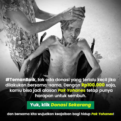 #TemanBaik, tak ada donasi yang terlalu kecil jika dilakukan bersama-sama. Dengan Rp100.000 saja, kita bisa jadi alasan Pak Yohanes tetap punya harapan untuk sembuh. Yuk, klik Donasi Sekarang dan bersama kita wujudkan keajaiban bagi hidup Pak Yohanes!