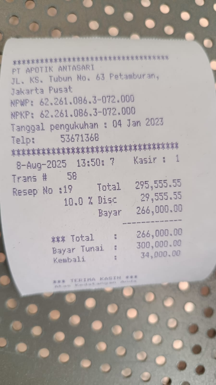 Dana digunakan untuk pembelian obat resep Rp600.000.2025-01-09 09:35:07