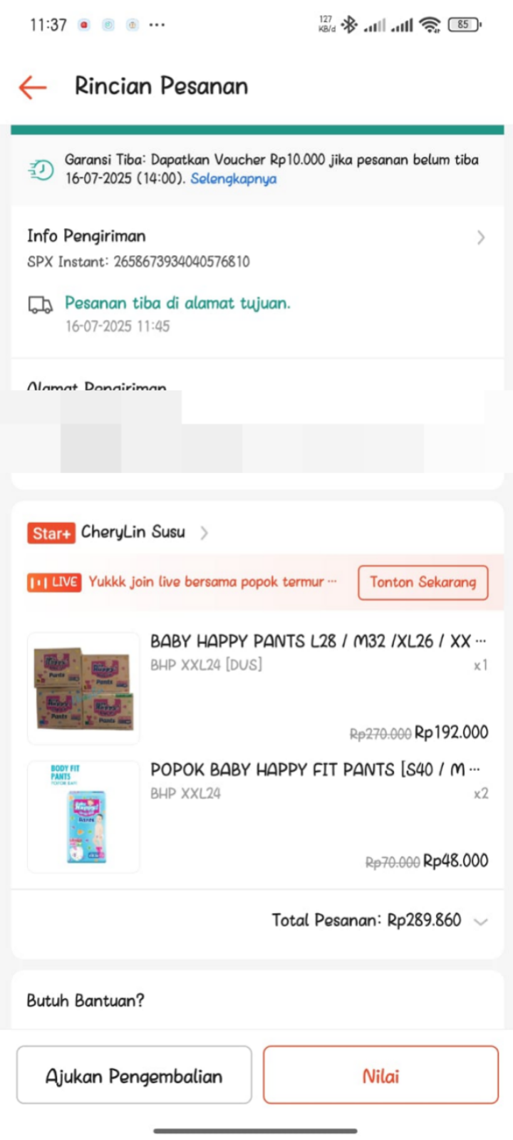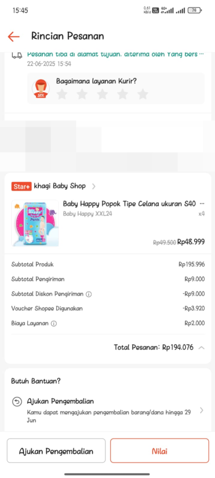 Dana digunakan untuk Pampers baby happy Rp55.000 x 4 ball = Rp220.0002025-06-23 10:01:50