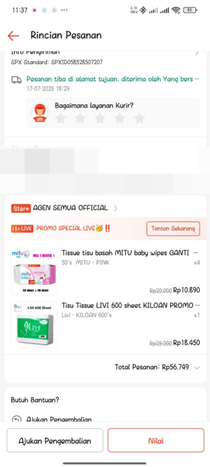 Dana digunakan untuk 1. Pampers baby happy Rp55.000 x 5 ball = Rp275.000 2. Tisu basah Rp12.000 x 3 pcs = Rp36.000 3. Minyak telon Rp33.0002025-02-05 09:42:42