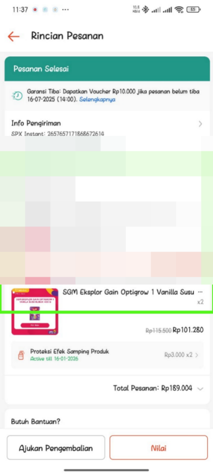 Dana bantuan dari #TemanBaik sudah digunakan untuk membeli kebutuhan susu dan lainnya.