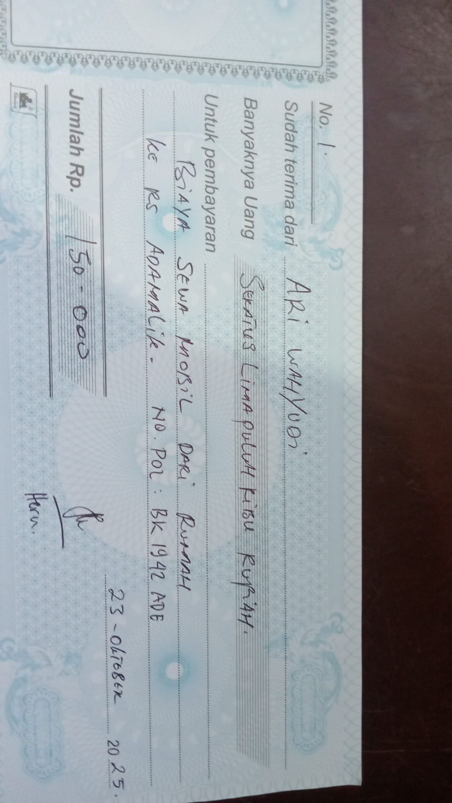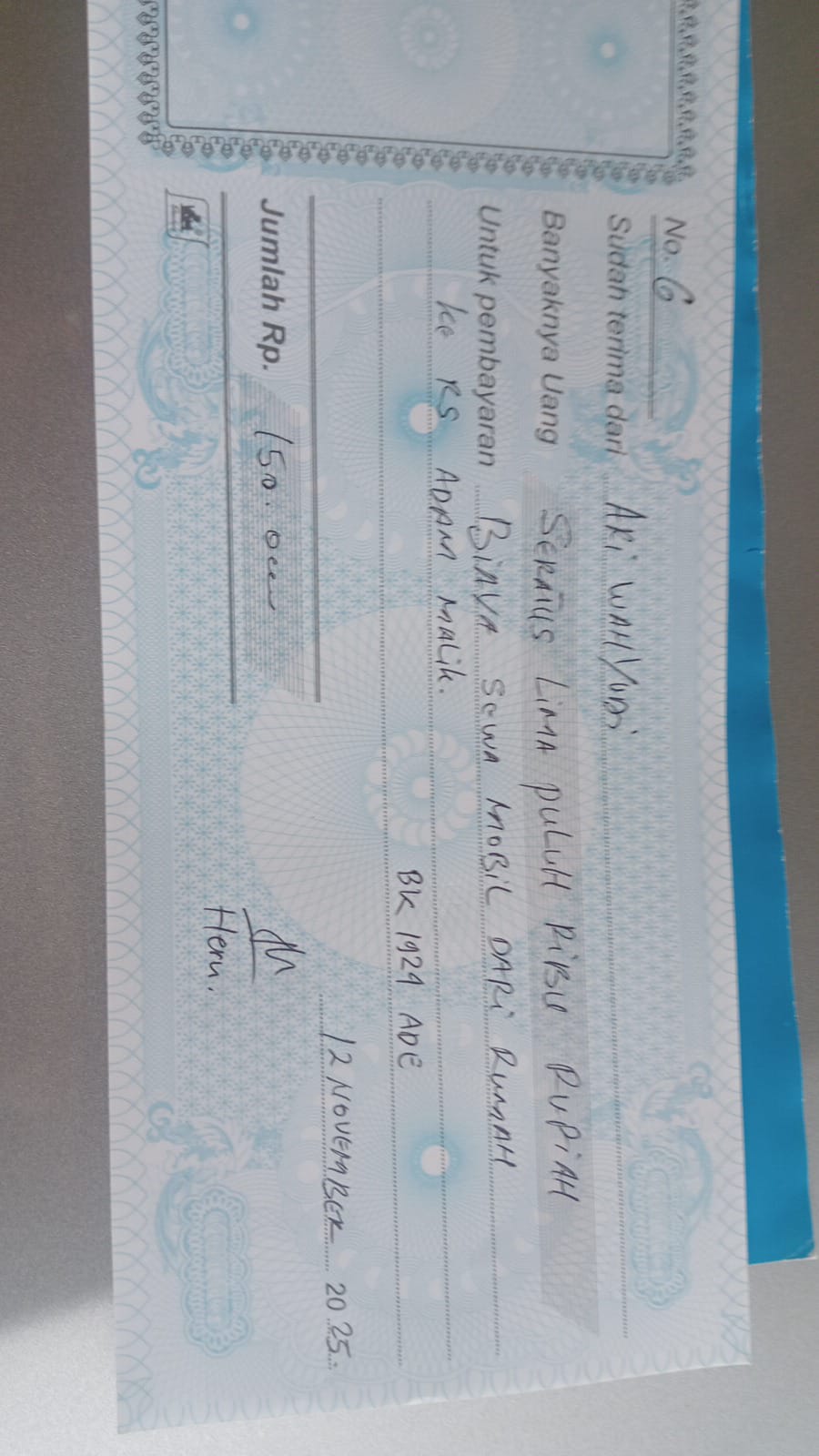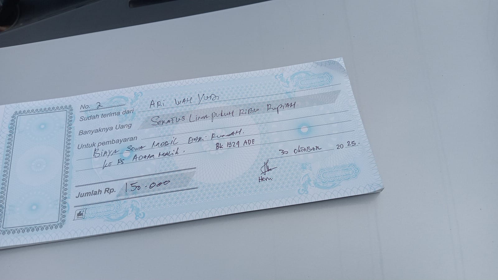 Dana digunakan untuk 1. Susu explor 15 kotak x Rp95.000 = Rp1.425.000 2. Pampers 3 ball x Rp83.000= Rp249.000 3. Transportasi sewa mobilke RS Adam Malik 12 x Rp150.000 =Rp1.800.0002025-11-18 10:25:26
