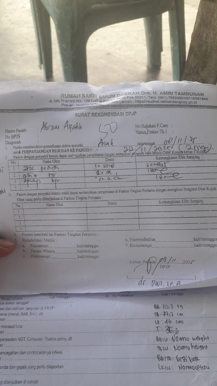 Kondisi Abizar saat ini masih rutin kontrol ke rumah sakit untuk minum obat TB serta menjalani terapi tiga kali seminggu.