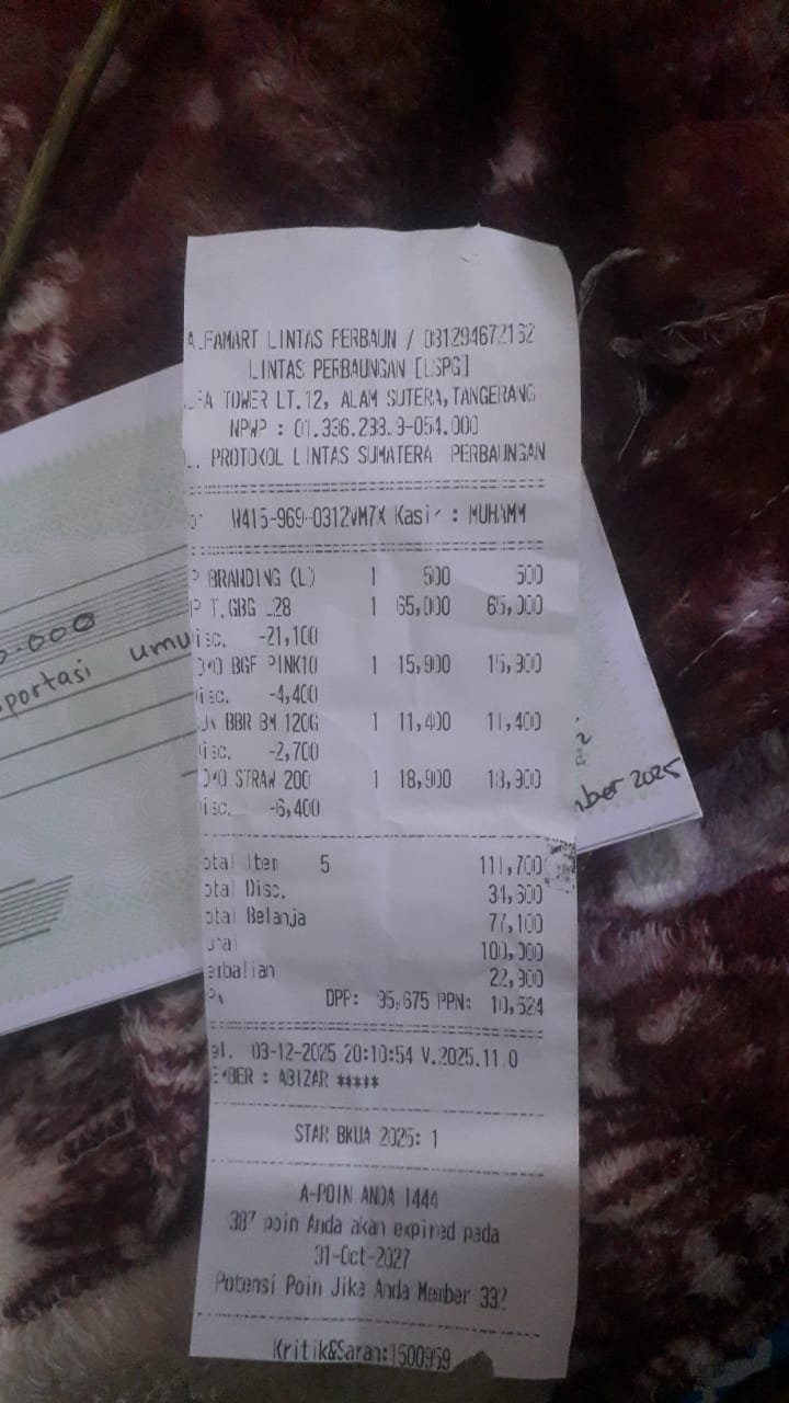 Dana digunakan untuk 1. Susu sgm gain Rp120000 × 3 = Rp360.000 2. Pampers mamy poko ukuran m isi 32 Rp60.000 3. Tisue basah mamy poko bacterial Rp20.000 4. Bubur promina Rp20.000 5. Transportasi umum ke RS PP Rp200.0002025-11-06 10:27:54