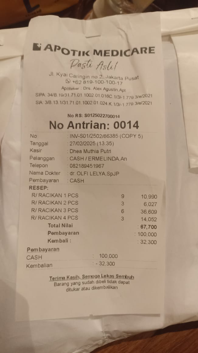 Saat ini anak saya yang sedang masa pemulihan masih membutuhkan biaya yang besar, seperti biaya untuk transportasi ke rumah sakit, sewa tempat tinggal selama di Jakarta, obat yang tidak dicover BPJS, susu, dan kebutuhan lainnya.