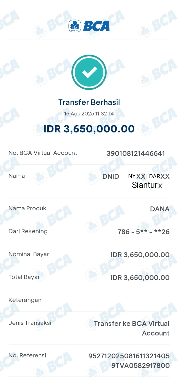 Dana digunakan untuk pembayaran cicilan sewa rumah pada bulan September2025-09-11 09:11:18