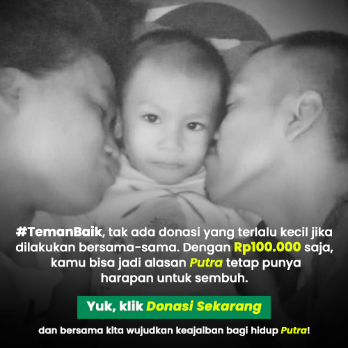#TemanBaik, tak ada donasi yang terlalu kecil jika dilakukan bersama-sama. Dengan Rp100.000 saja, kita bisa jadi alasan Putra tetap punya harapan untuk sembuh. Yuk, klik Donasi Sekarang dan bersama kita wujudkan keajaiban bagi hidup Putra!