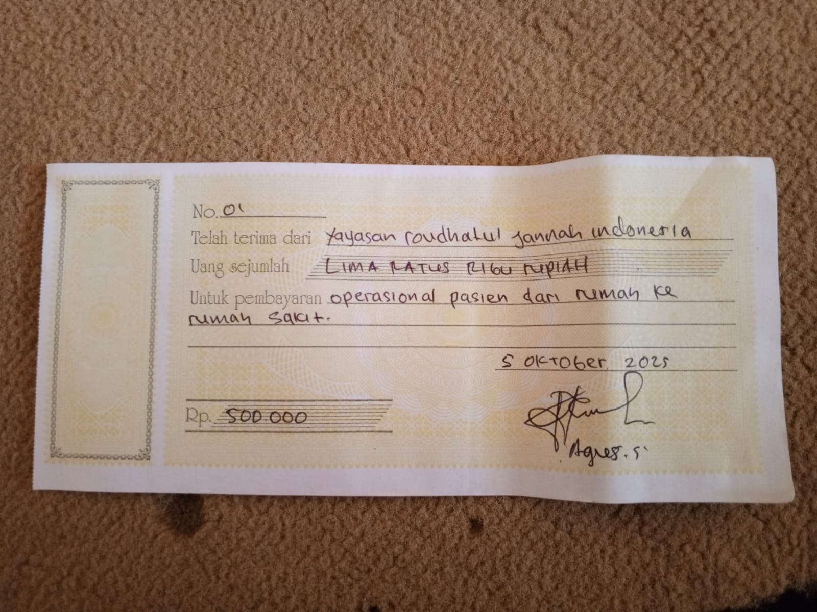 Terima kasih kepada #TemanBaik yang telah membantu Rachmat dalam proses persiapan operasinya. Bantuan yang diberikan telah kami gunakan untuk biaya transportasi pulang pergi ke rumah sakit.