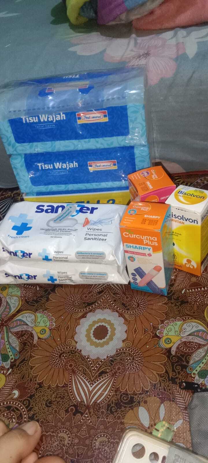 Dana bantuan dari #TemanBaik telah digunakan untuk pembelian susu, tisu kering, tisu basah, vitamin Curcuma, serta obat Hufagrip.
