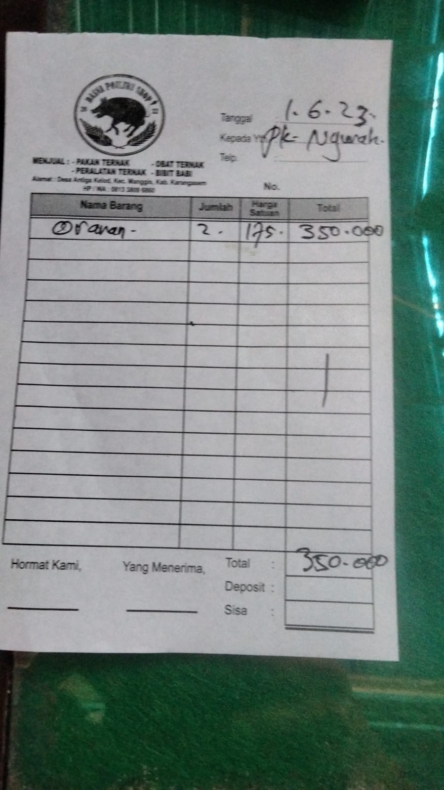 Dana digunakan untuk 1. Beras jagung 170.000 x 10 sak= Rp1.700.000 (shelter Selatan) 2. Beras jagung 175.000 x 16 sak= Rp2.800.000 (shelter Gunung Agung) 3. Cat food merk Maxi Cat 2 sak Rp1.040.000 4. Pembayaran Gaji staf untuk 1 bulan 2 orang Rp4.500.000.2023-04-20 15:23:13