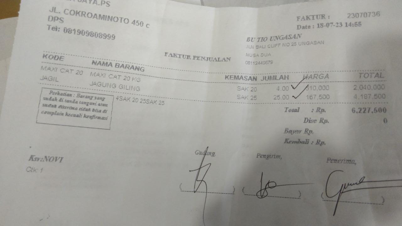 Kami juga ingin mengabarkan bahwa bantuan dana dari TemanBaik sudah digunakan dengan baik untuk pembelian beras jagung (shelter Selatan), beras jagung (shelter Gunung Agung), cat food, pembayaran gaji staf untuk 2 orang selama 1 bulan.
