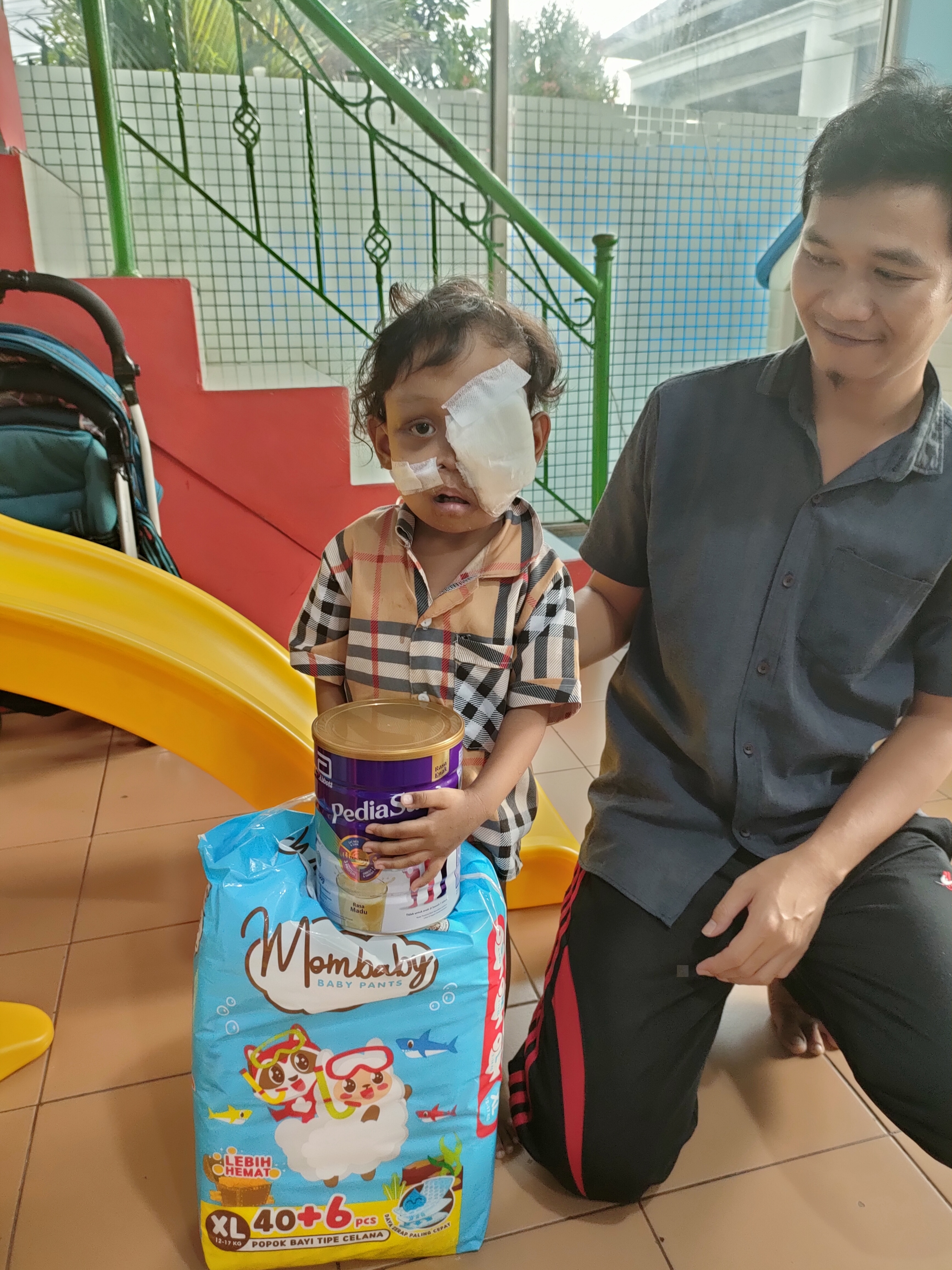 Usia Syakila saat ini 3 tahun. dimana anak seusia Syakila sedang senangNya bermain dan belajar,tapi tidak dengan Syakila,Syakila harus terbaring sakit karna kanker di matanya