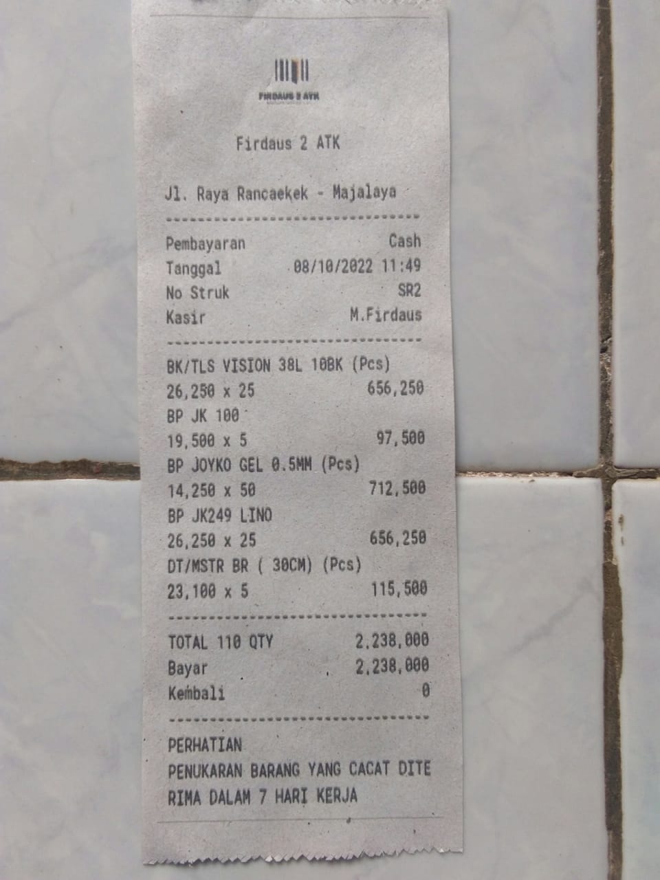Dana digunakan untuk: 1. Buku Tulis 25 Pack @25.000 Rp625.000 2. Penghapus 5 Pack @18.500 Rp92.500 3. Pensil 25 Pack @11.500 Rp287.500 4. Bolpoint 25 Pack @13.500 Rp337.500 5. Penggaris 5 Pack @22.500 Rp112.500 6. Tas Kanvas 5 Pack @30.000 Rp150.000 7. Transport Pembelian Rp95.000.2022-10-06 17:18:13