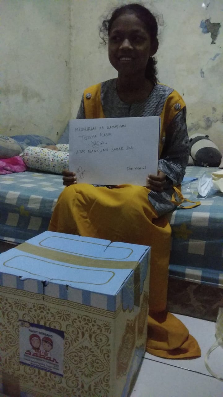 Lain hal lagi dengan Wida yang harus menjalani Hari raya ini di rumah sakit, karena kondisi Wida saat ini sedang kurang baik. Untuk itu Yayasan Ginjal Indonesia memberikan dukungan lewat santunan dan juga pemberian paket sembako.