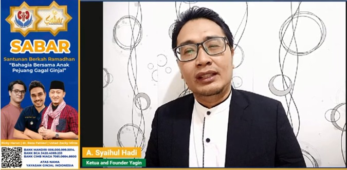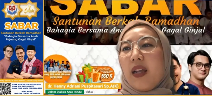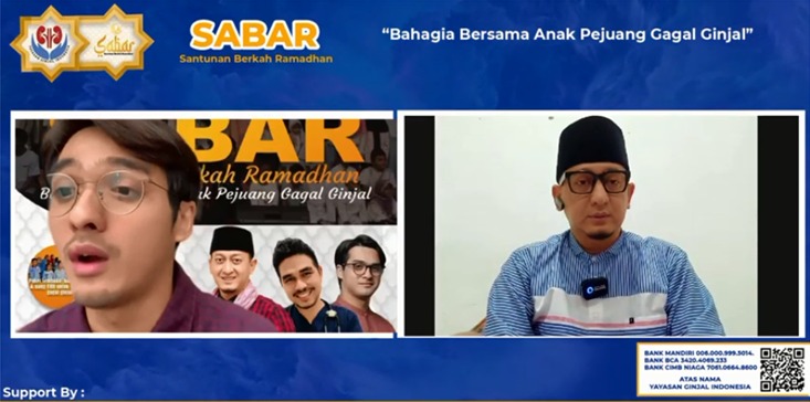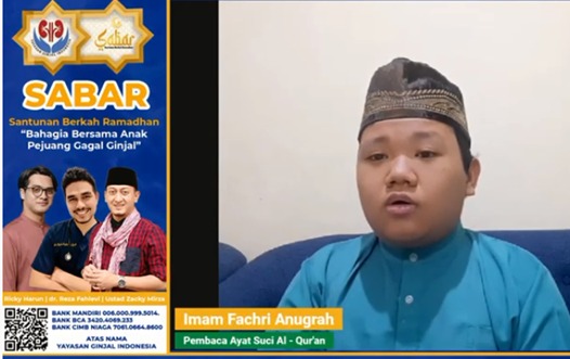 Alhamdulillah pada tanggal 1 Mei kemarin, Yayasan Ginjal Indonesia telah menyelenggarakan Santunan Berkah Ramadhan via virtual. Acara ini dimeriahkan oleh Ricky Harun, Ustad Zacky Mirza, dr. Reza Fahlevi dan juga perwakilan anak pejuang gagal ginjal yang membacakan ayat suci Al-Qur'an juga menyanyi untuk menghibur teman-temannya.