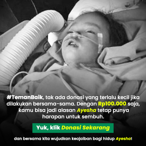 #TemanBaik, tak ada donasi yang terlalu kecil jika dilakukan bersama-sama. Dengan Rp100.000 saja, kita bisa jadi alasan Ayesha tetap punya harapan untuk sembuh. Yuk, klik Donasi Sekarang dan bersama kita wujudkan keajaiban bagi hidup Ayesha!